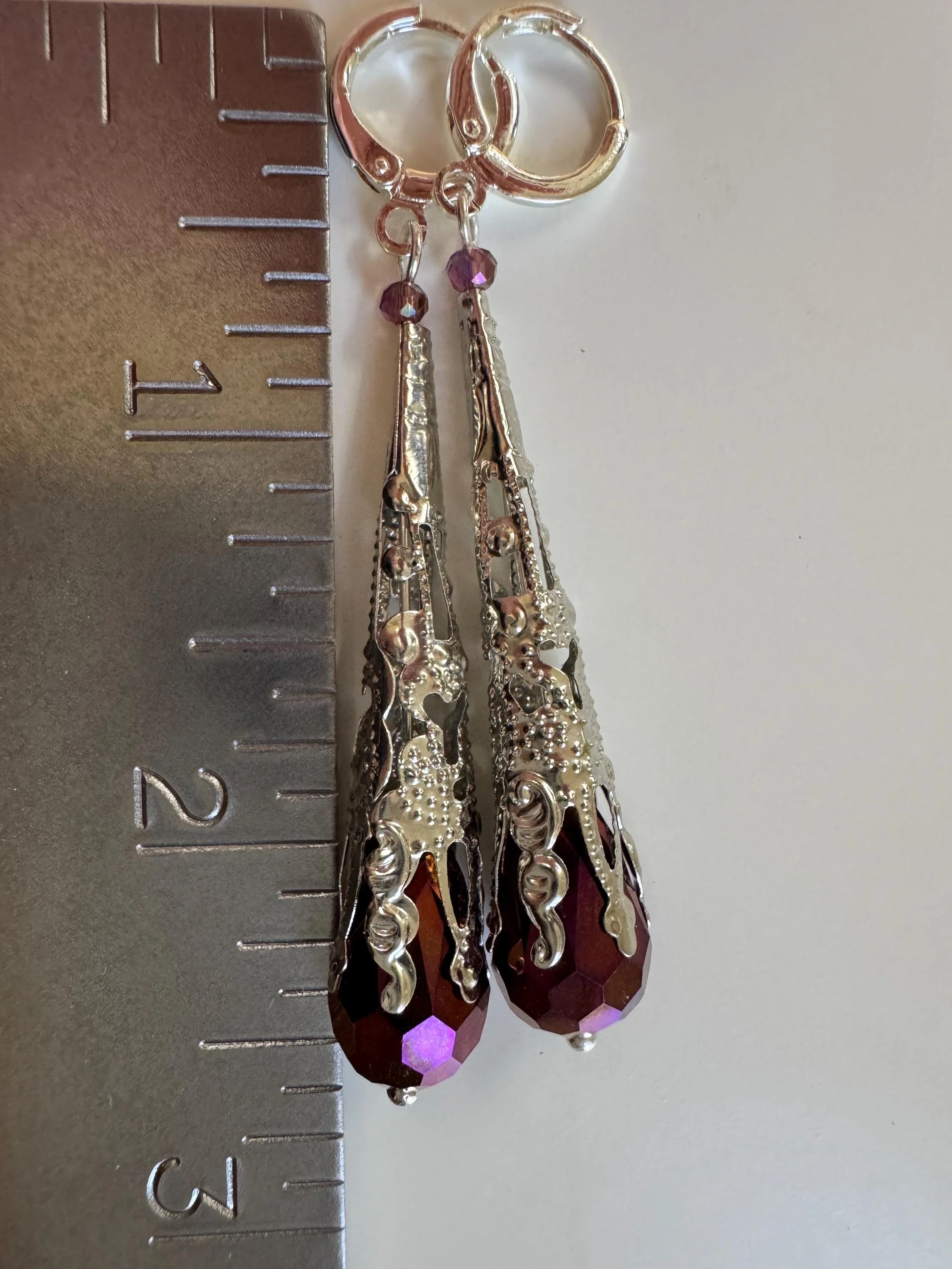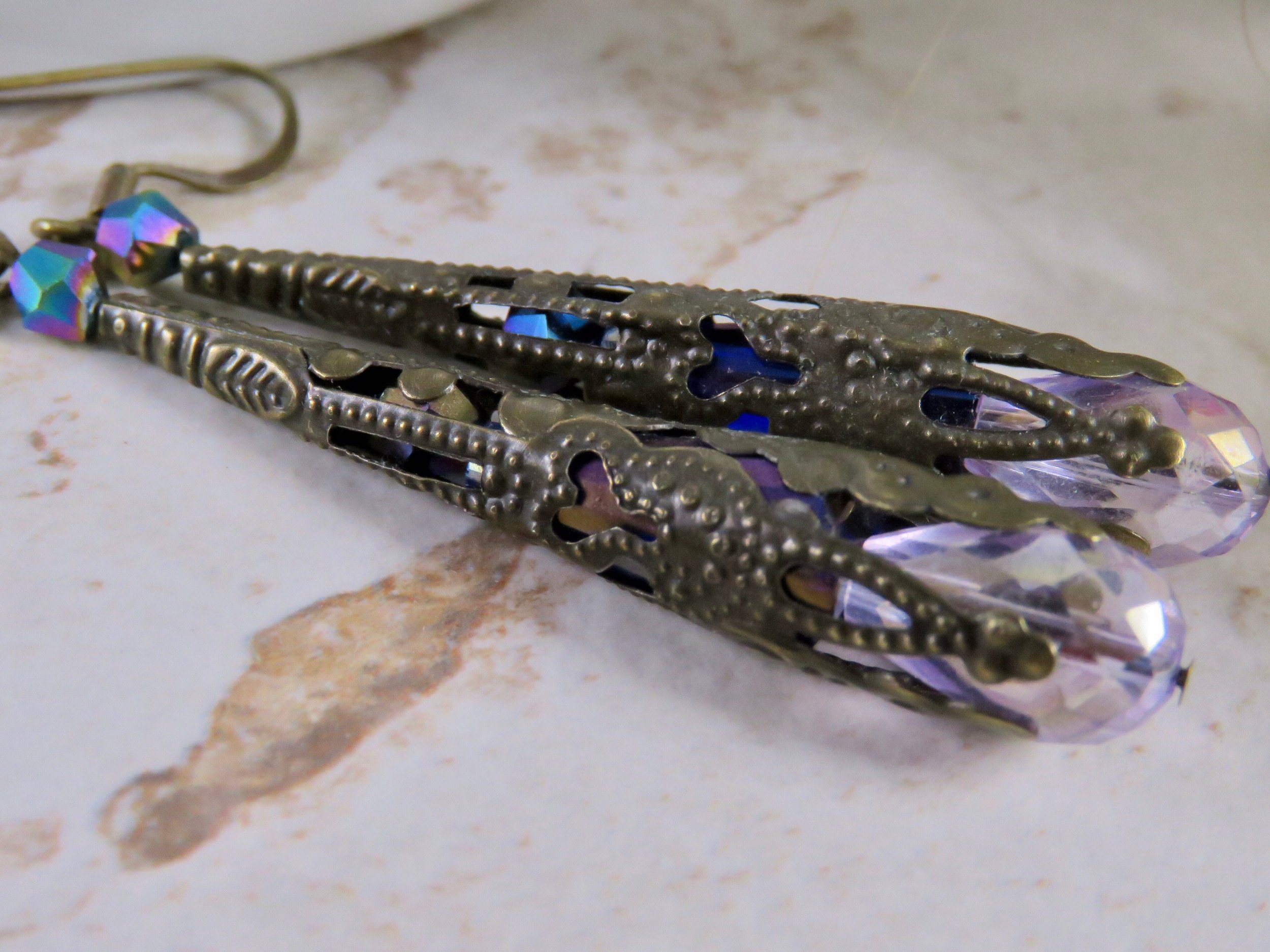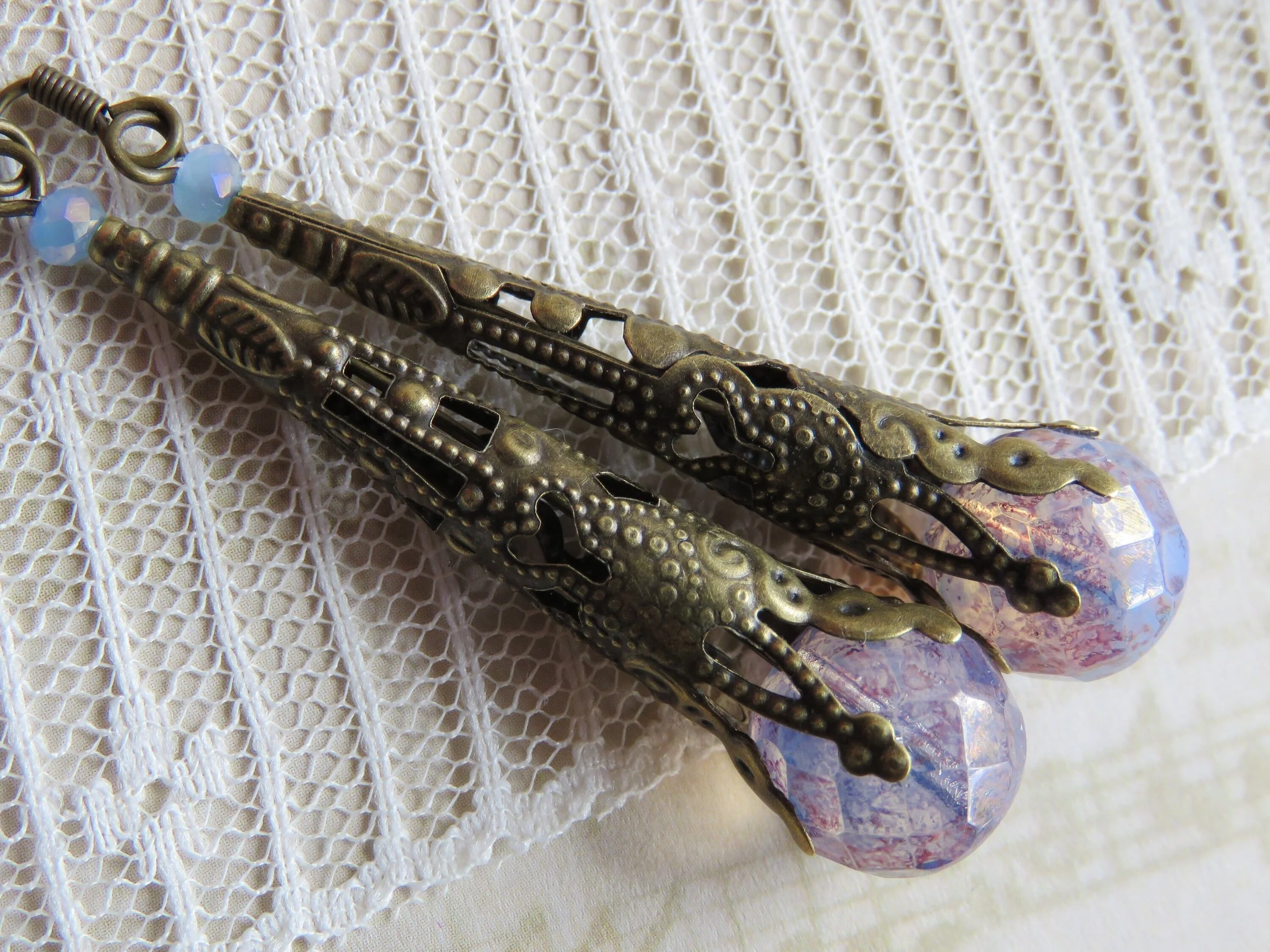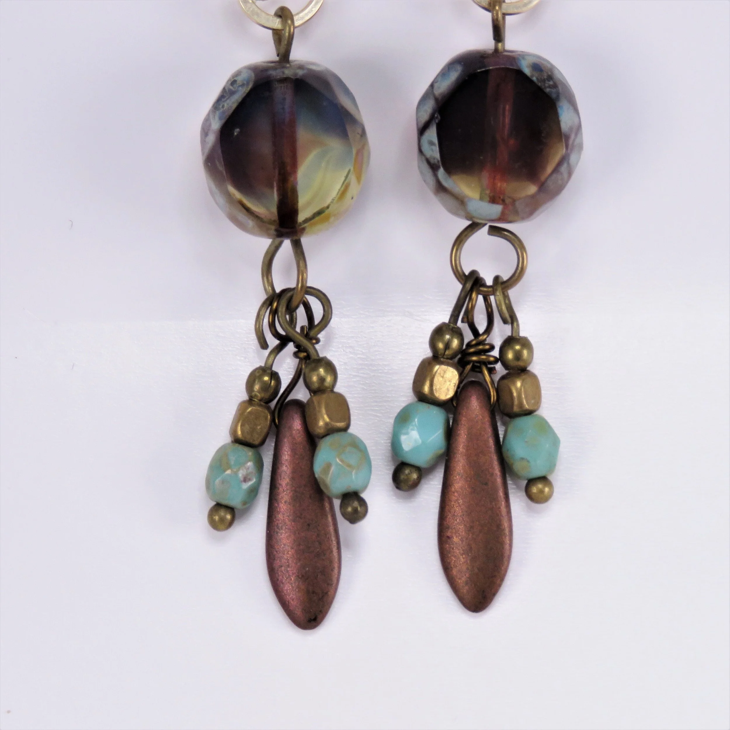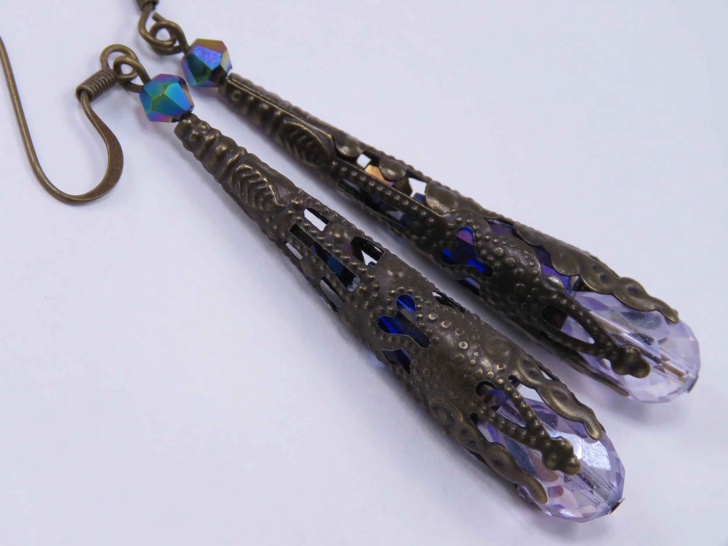 Elegant Amethyst Dangles: Handcrafted Bronze & Gold Statement Earrings