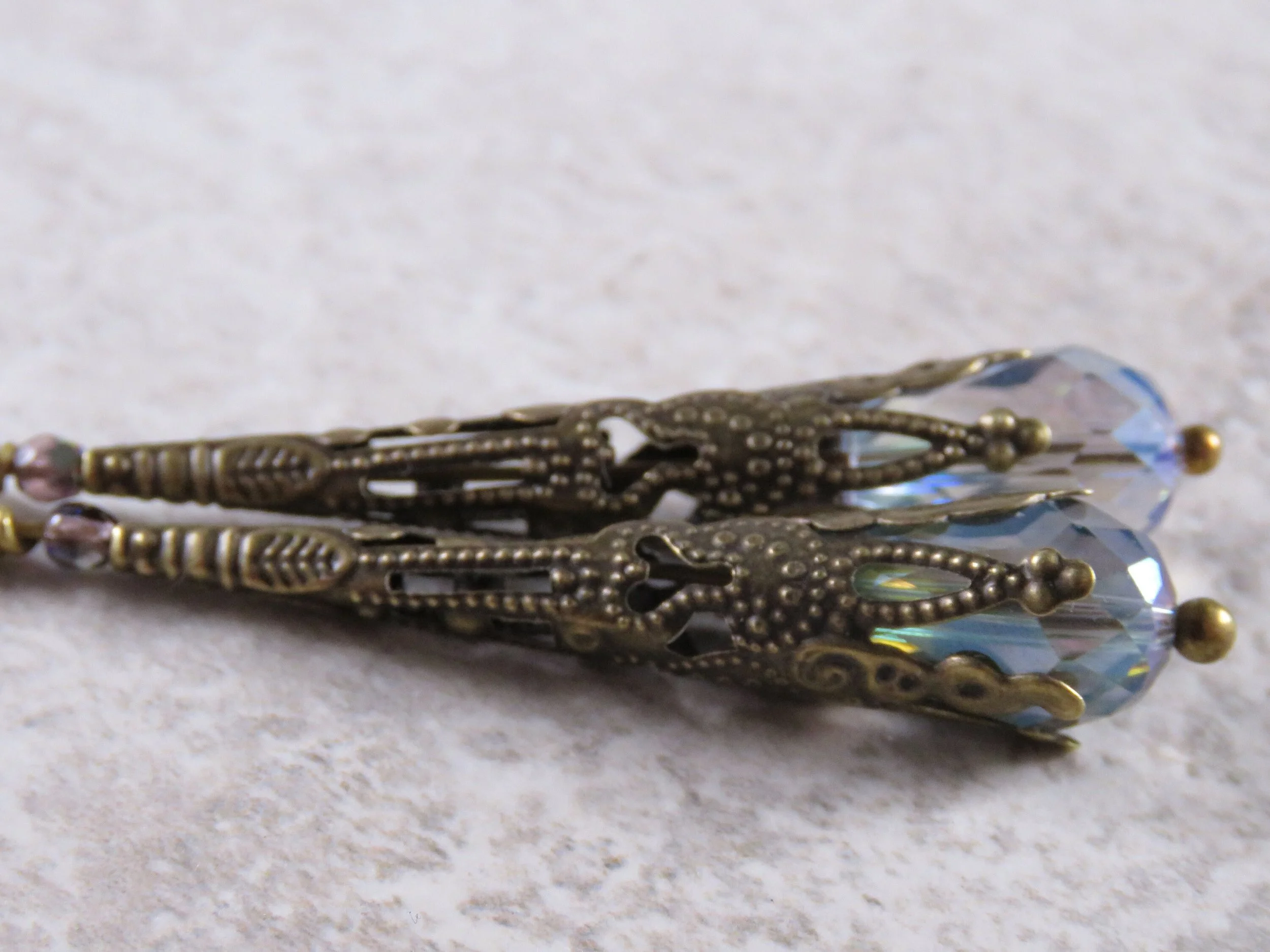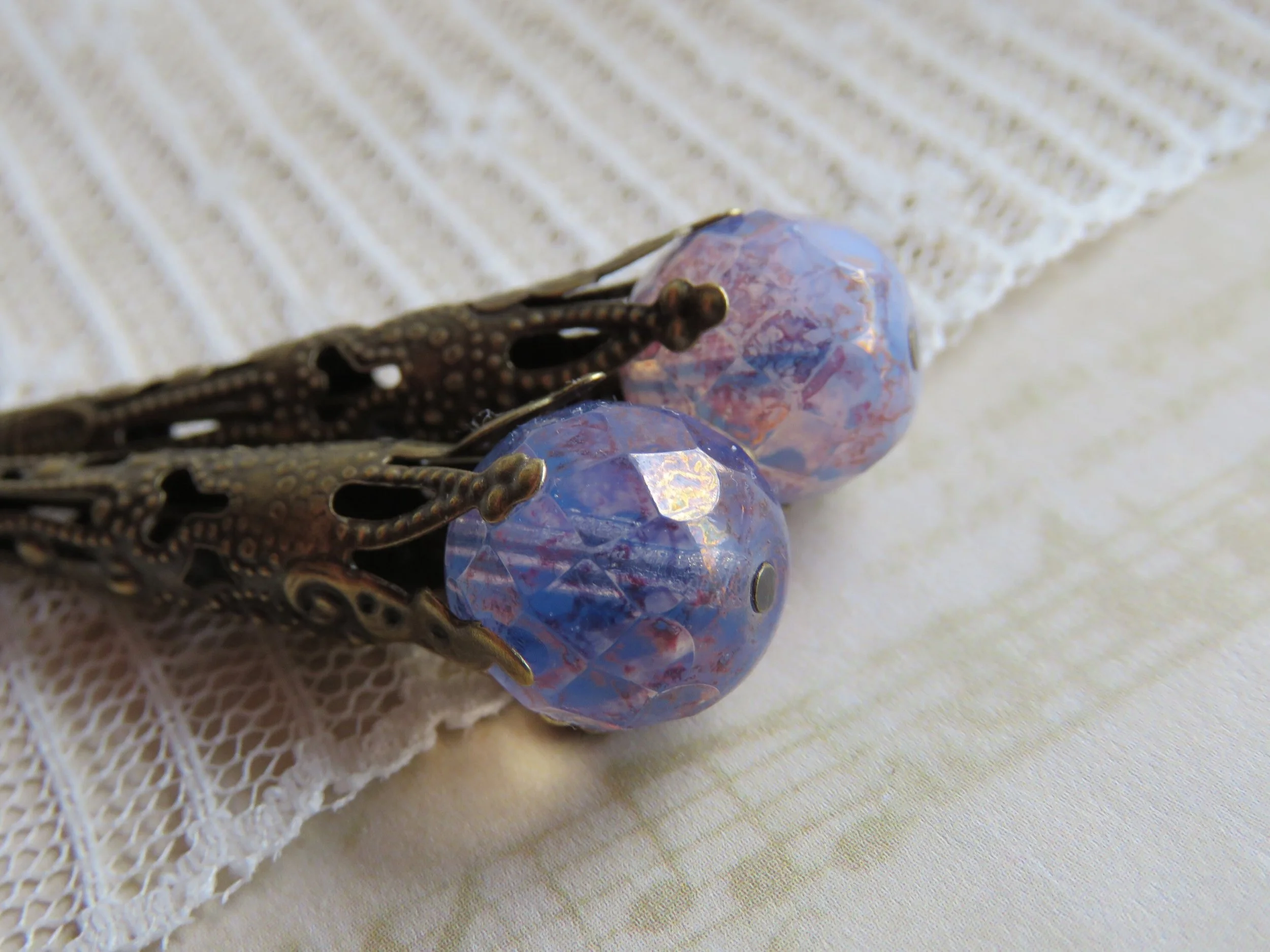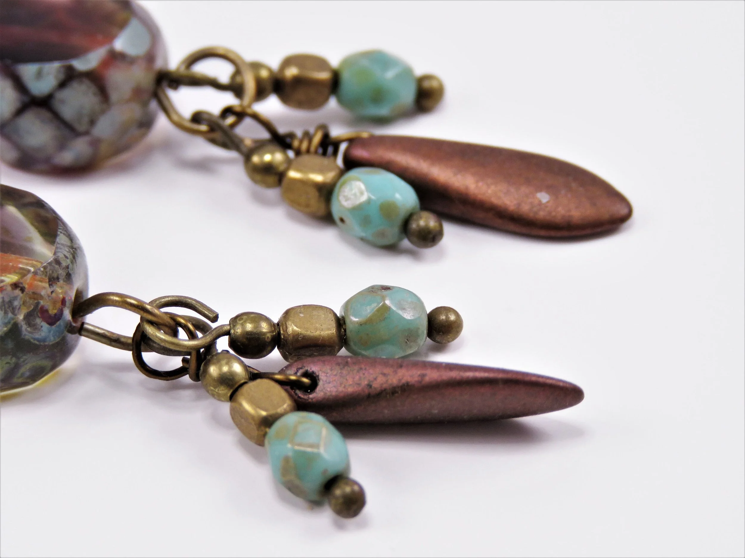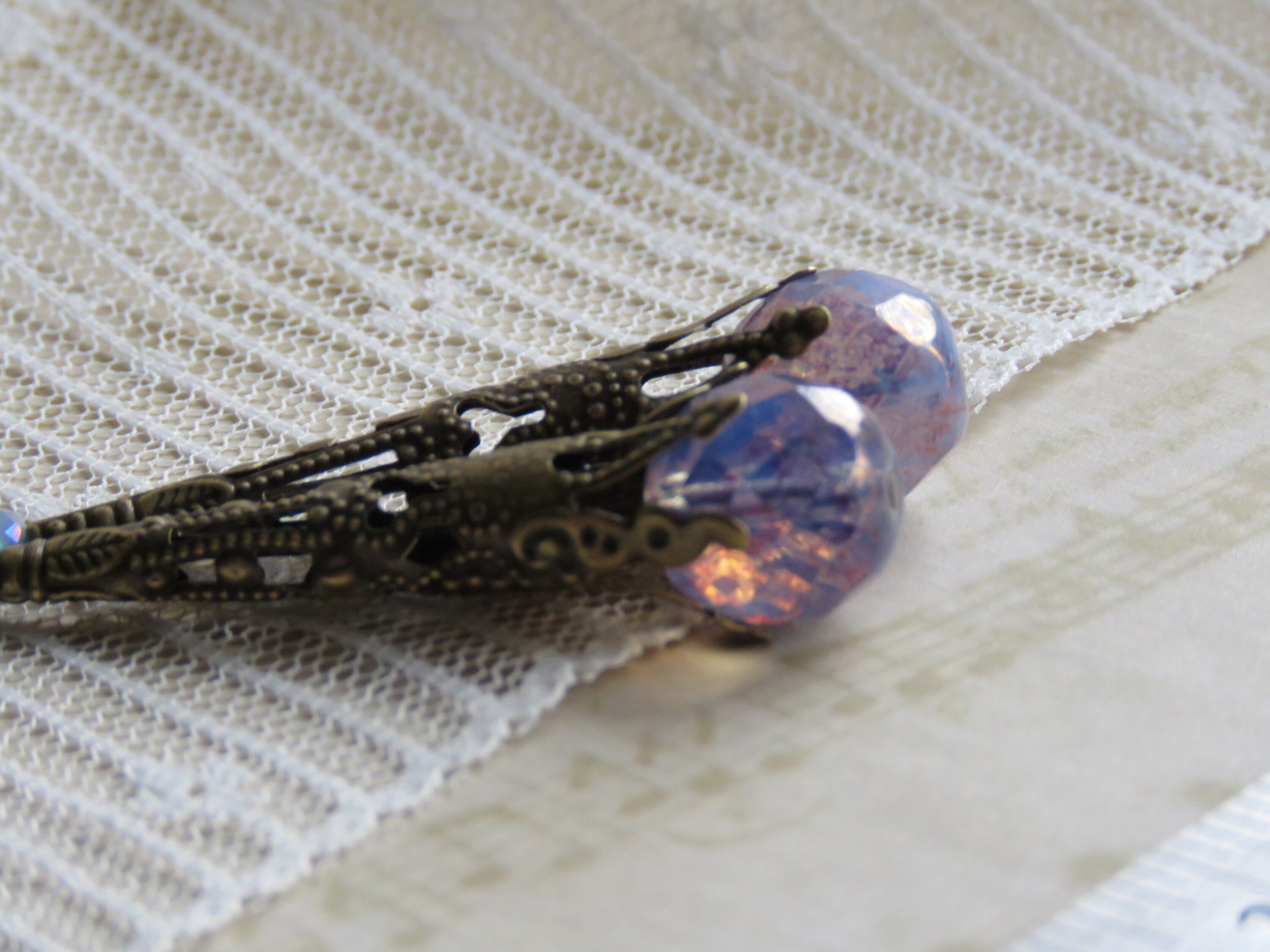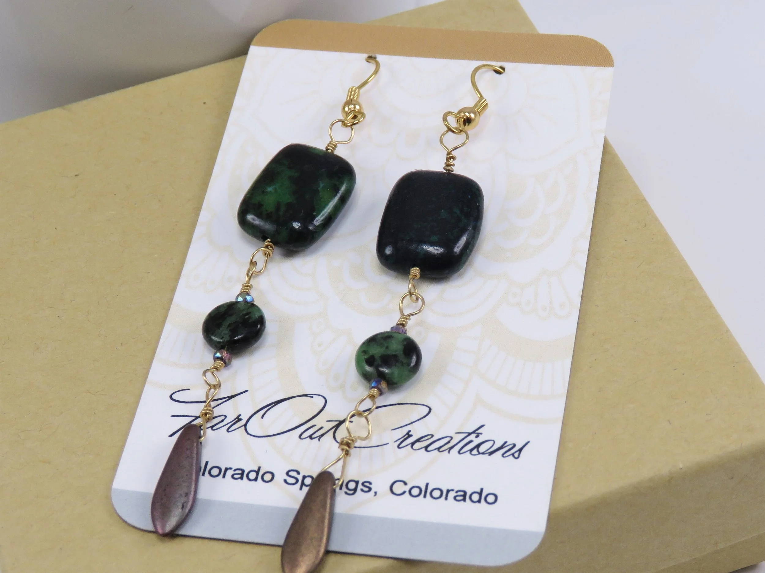 Elegant Amethyst Dangles: Handcrafted Bronze & Gold Statement Earrings