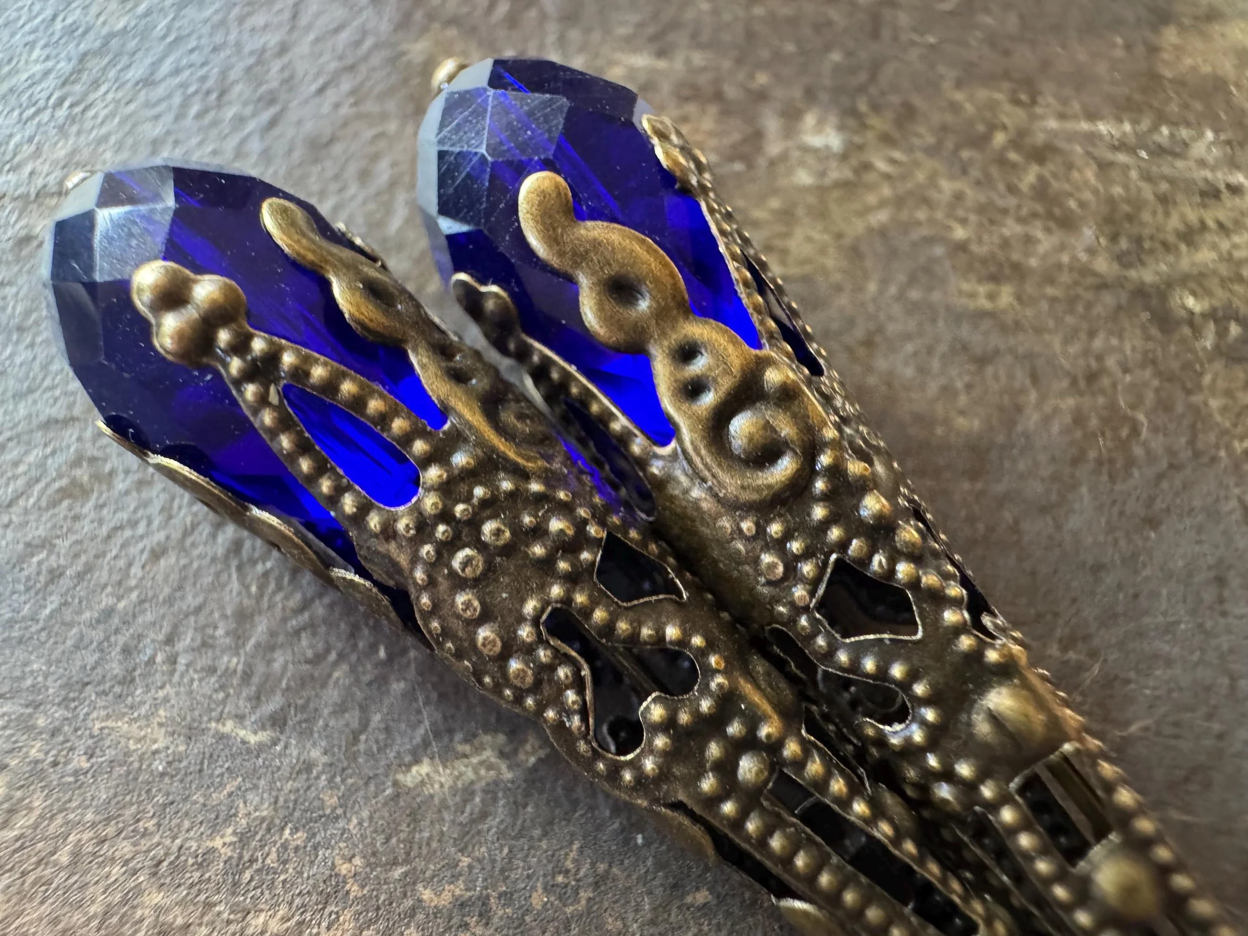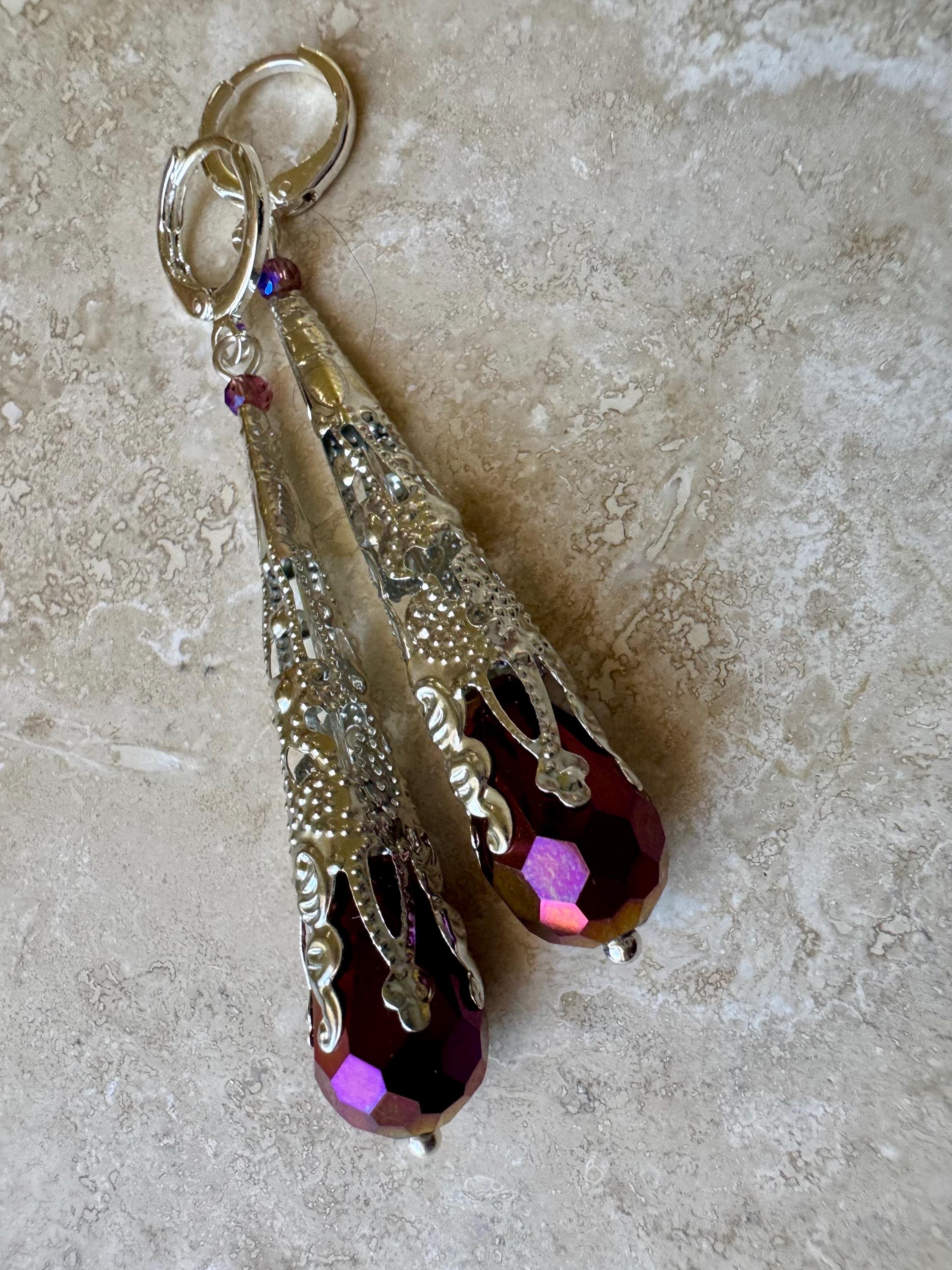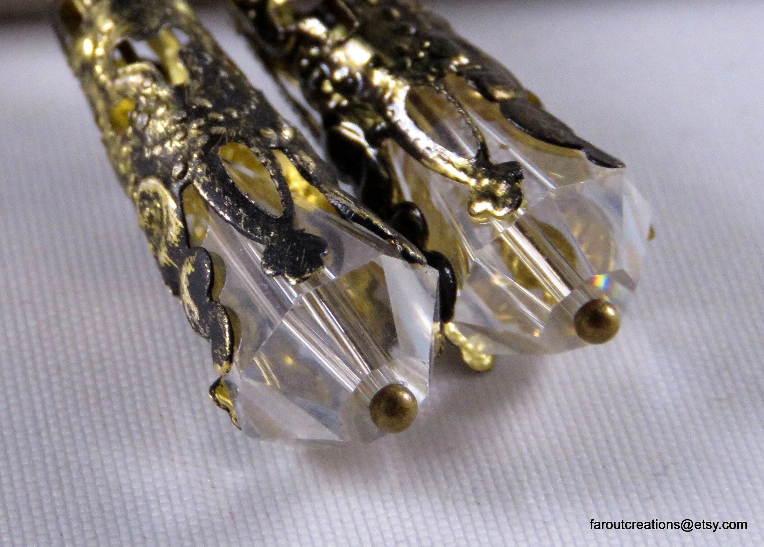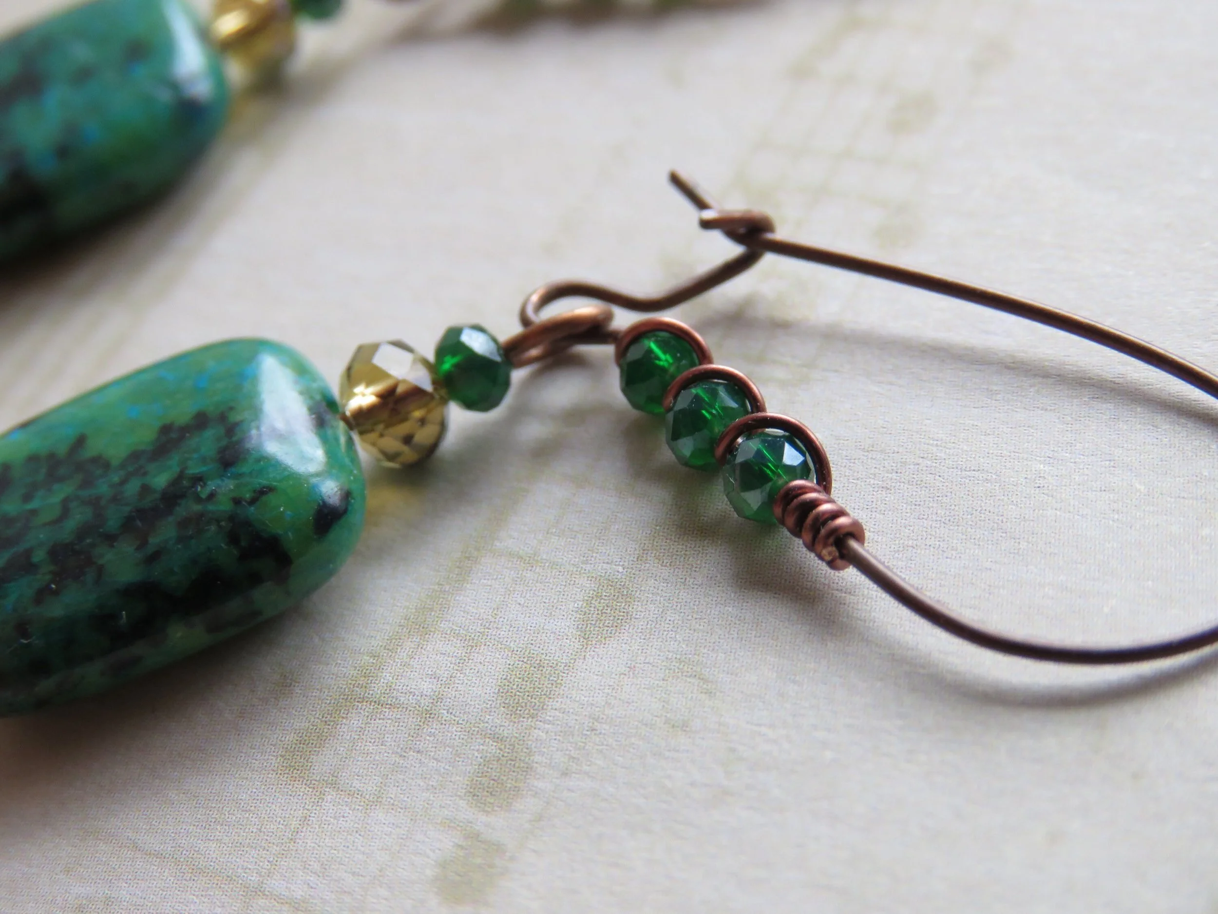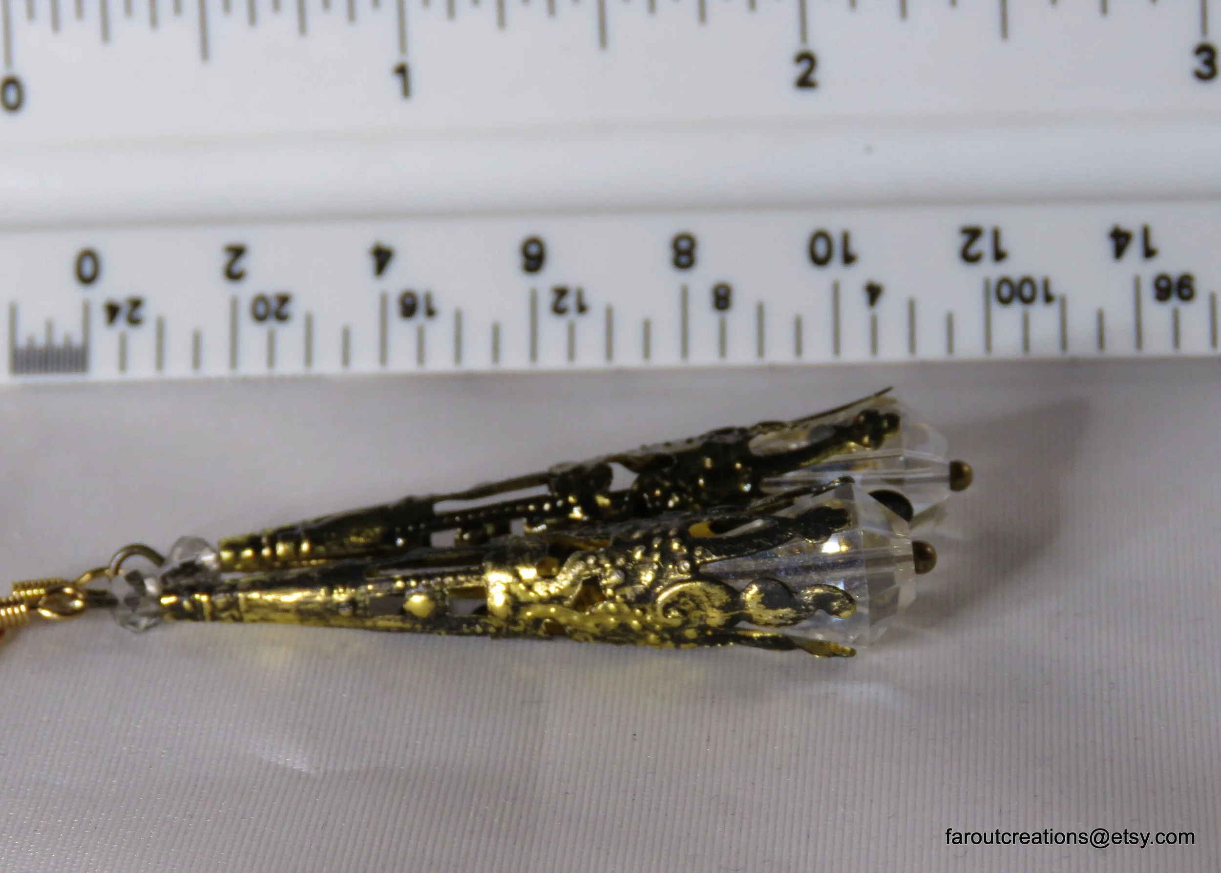 Elegant Amethyst Dangles: Handcrafted Bronze & Gold Statement Earrings