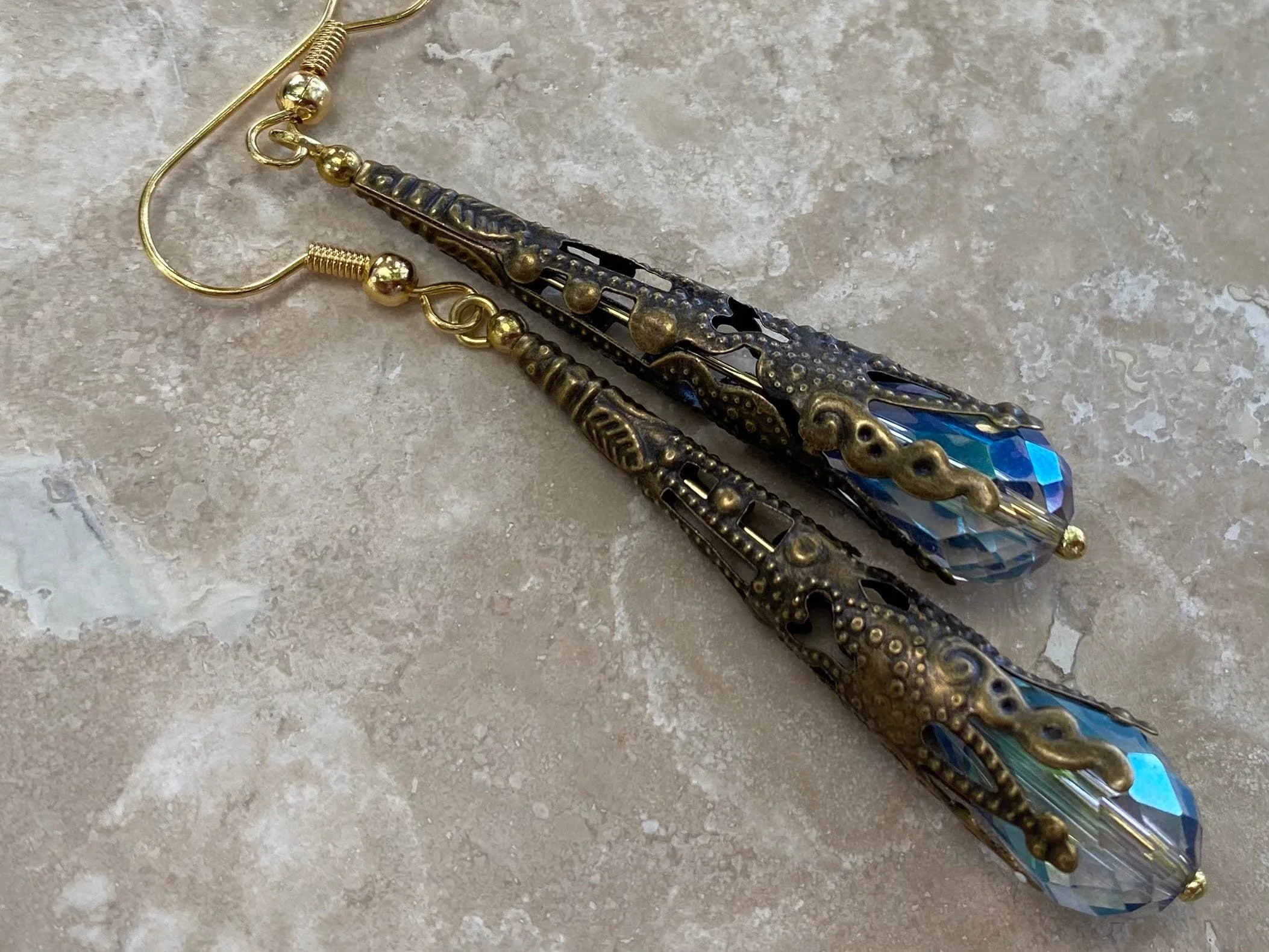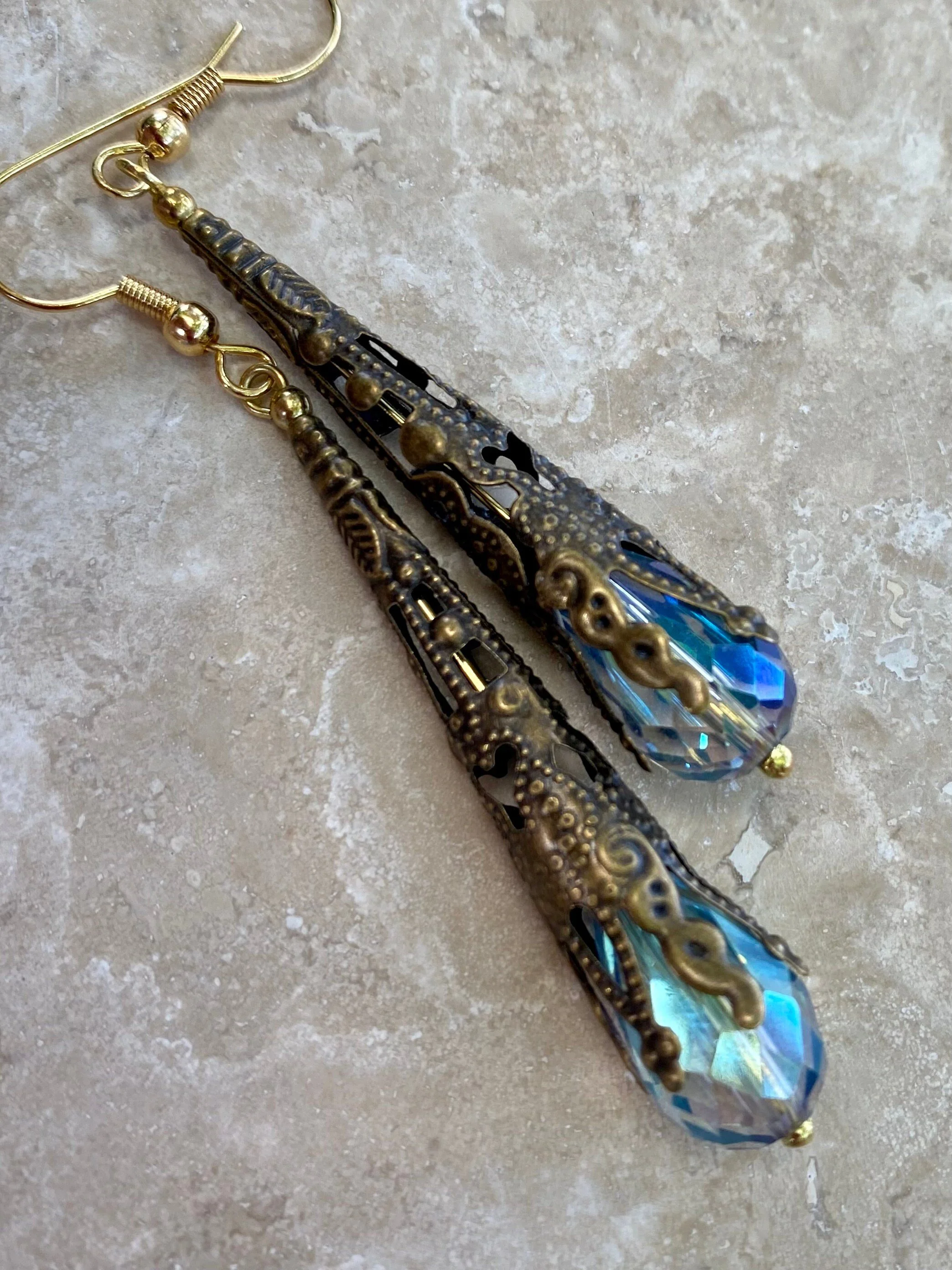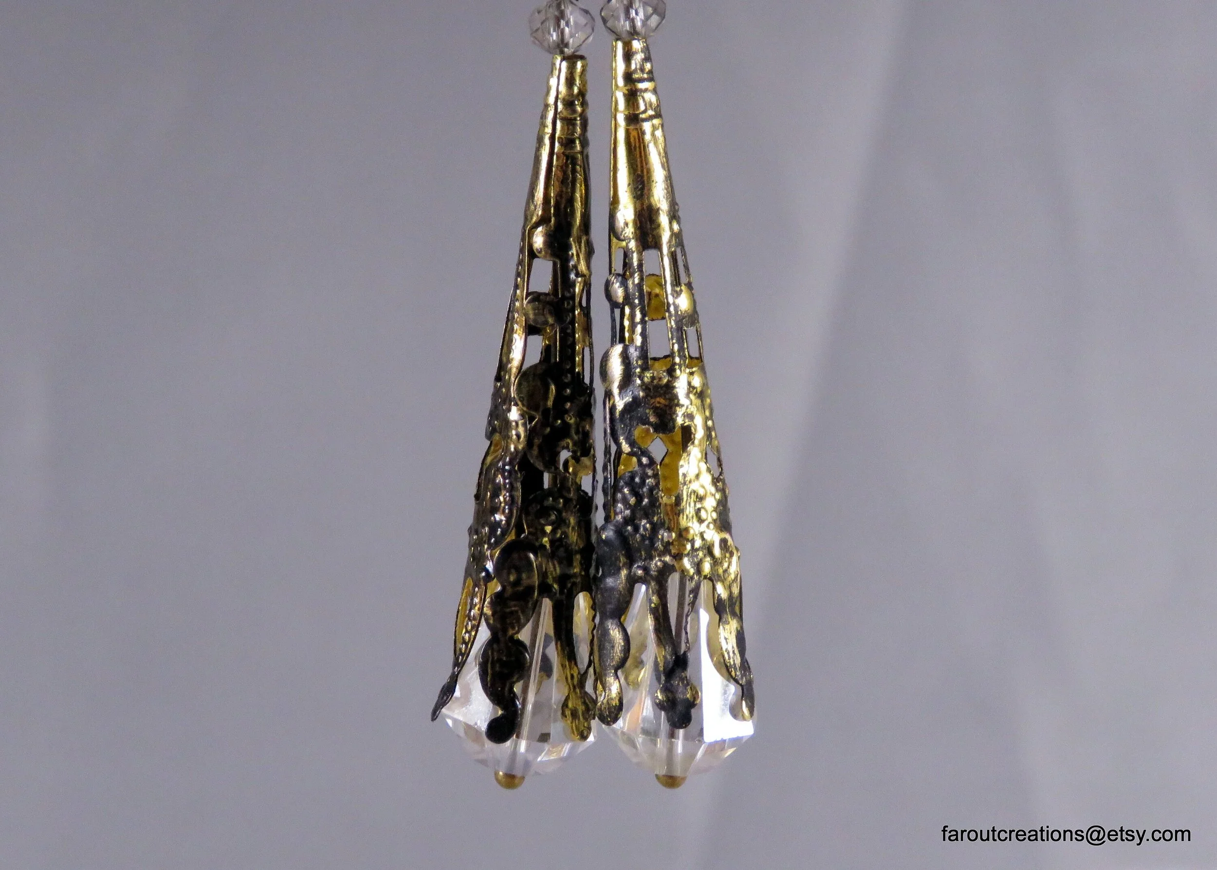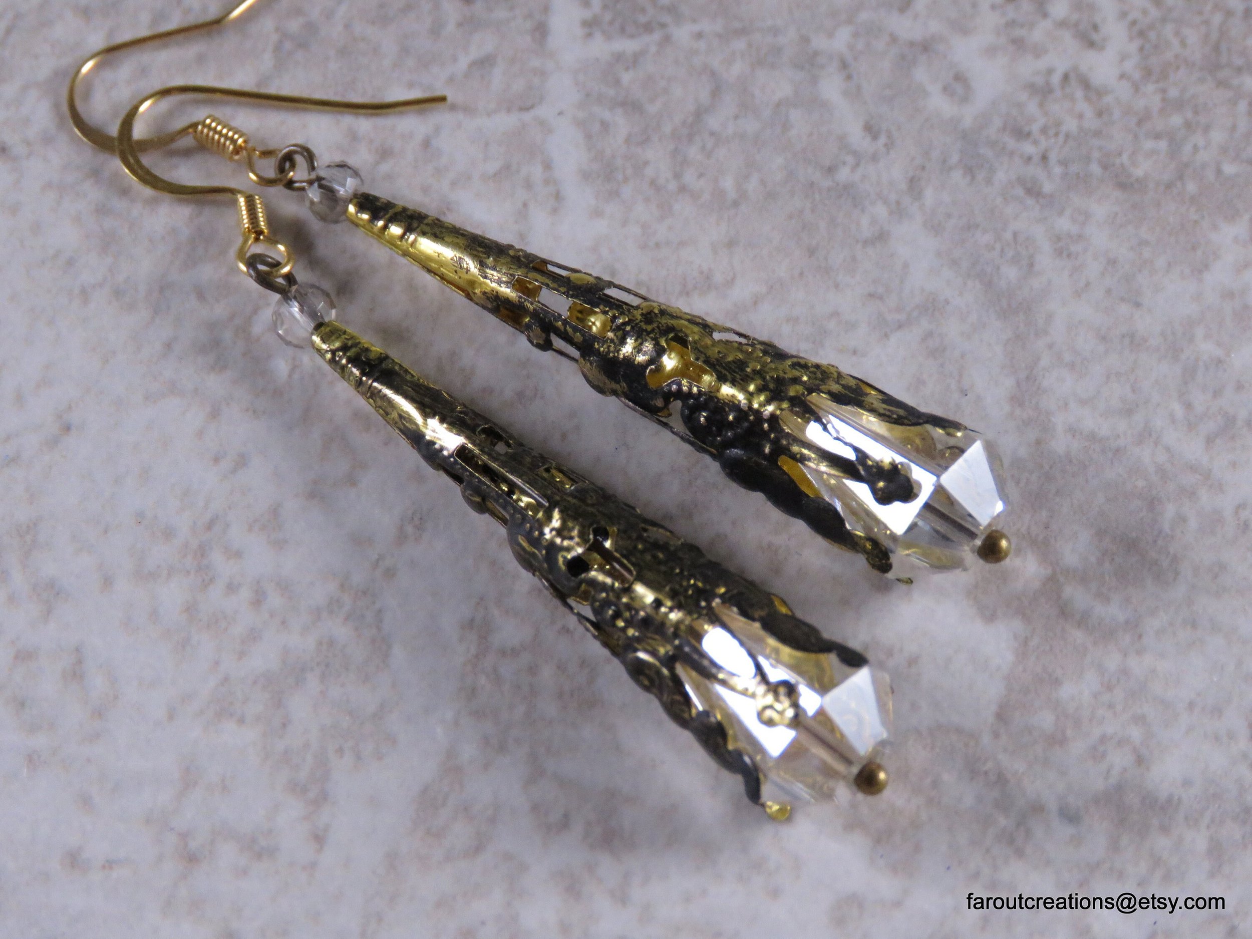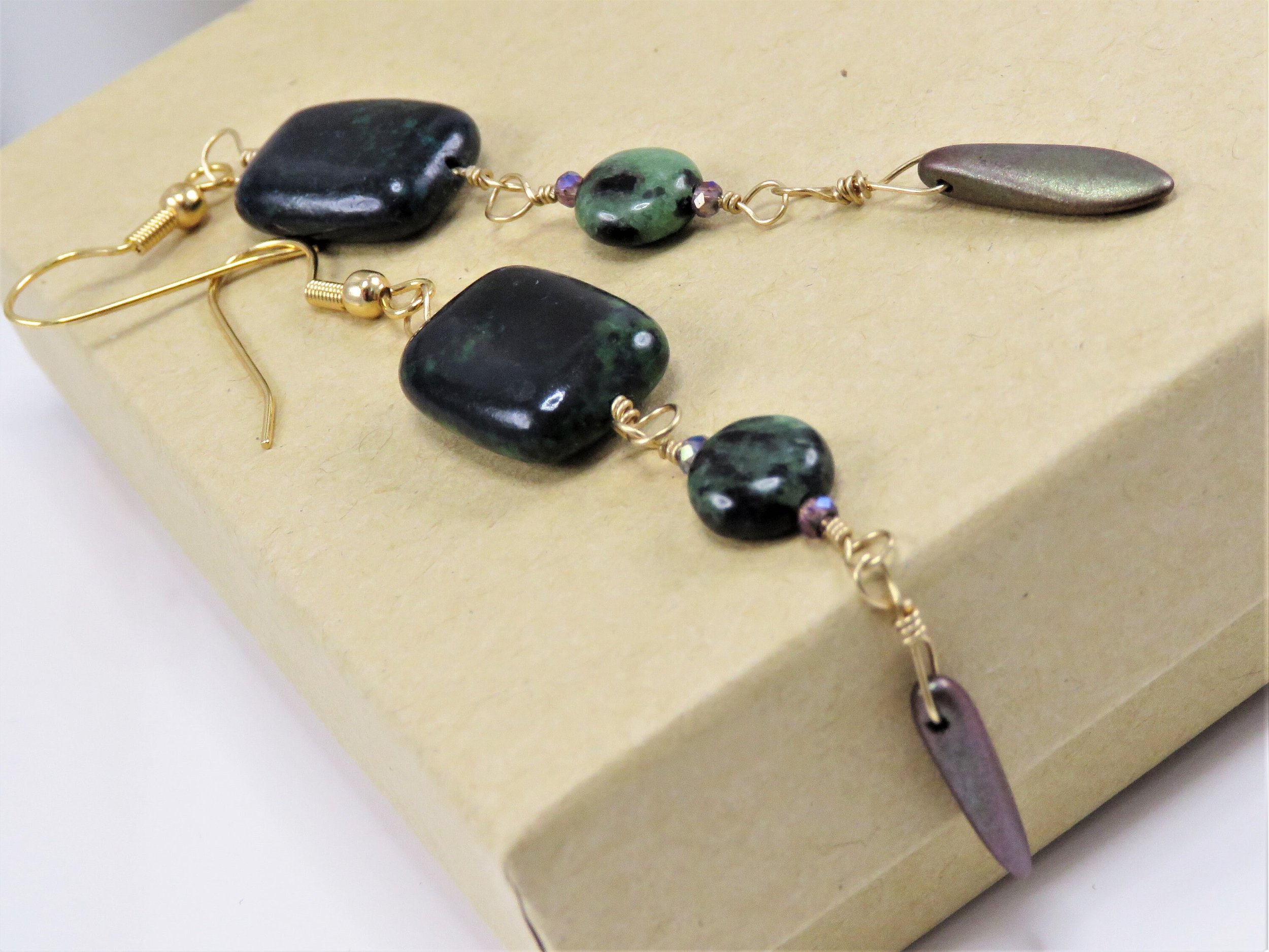 Elegant Amethyst Dangles: Handcrafted Bronze & Gold Statement Earrings