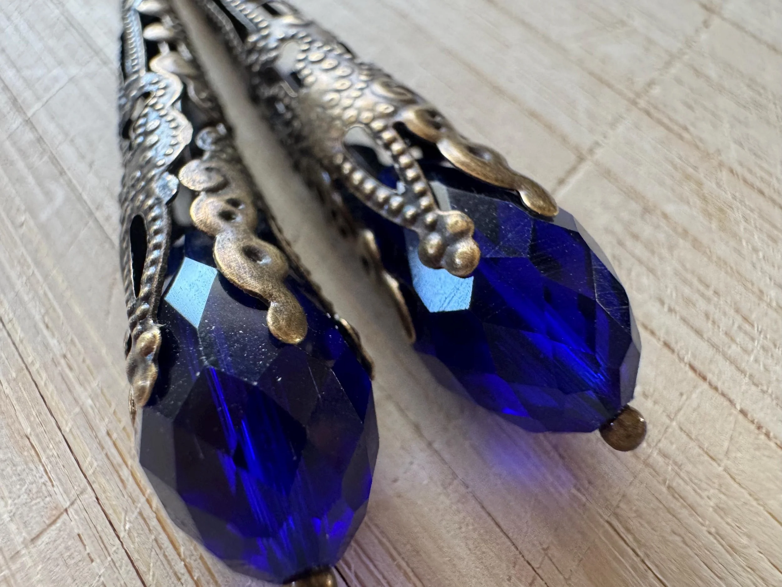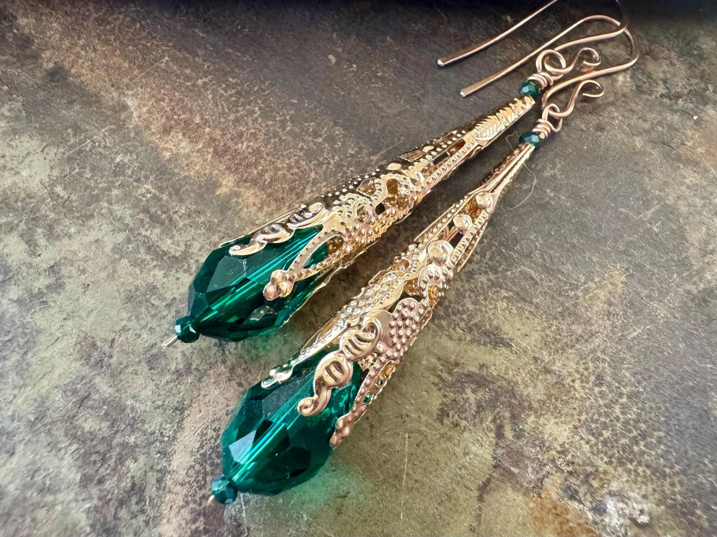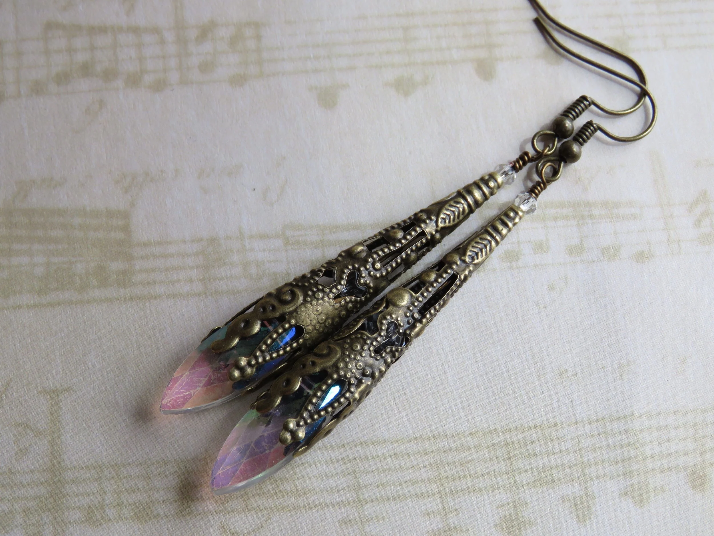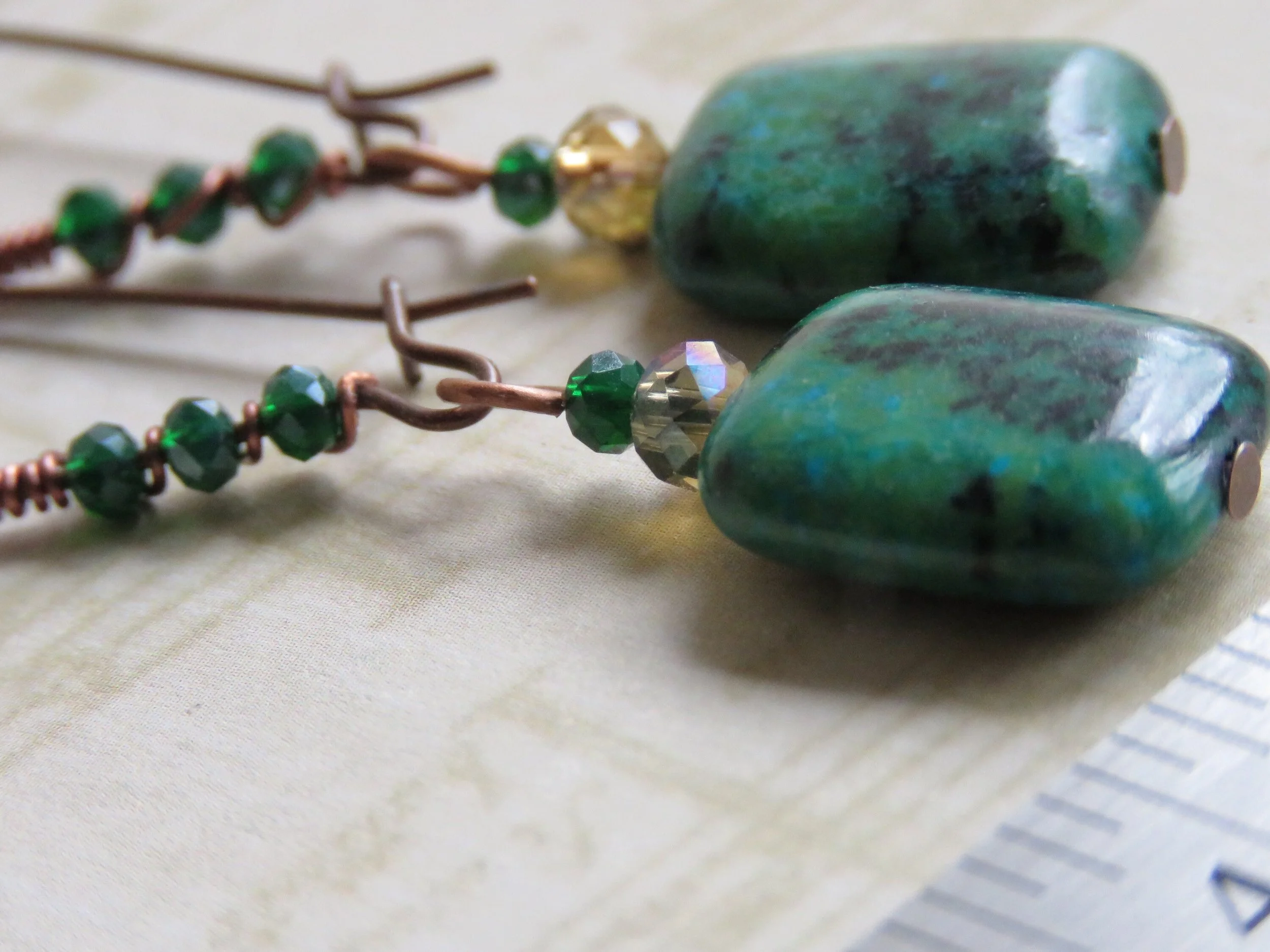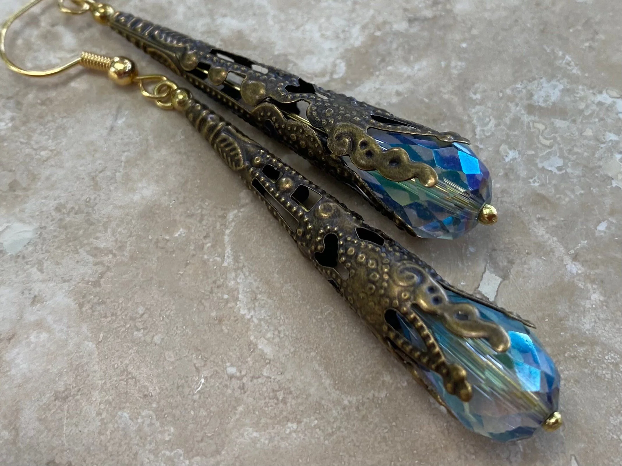 Elegant Amethyst Dangles: Handcrafted Bronze & Gold Statement Earrings