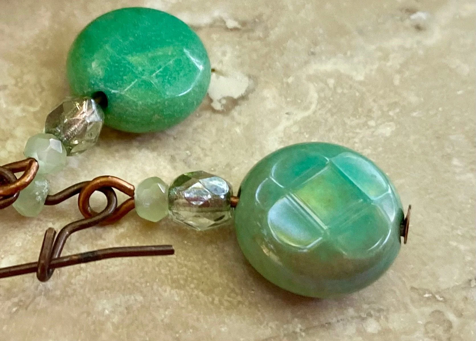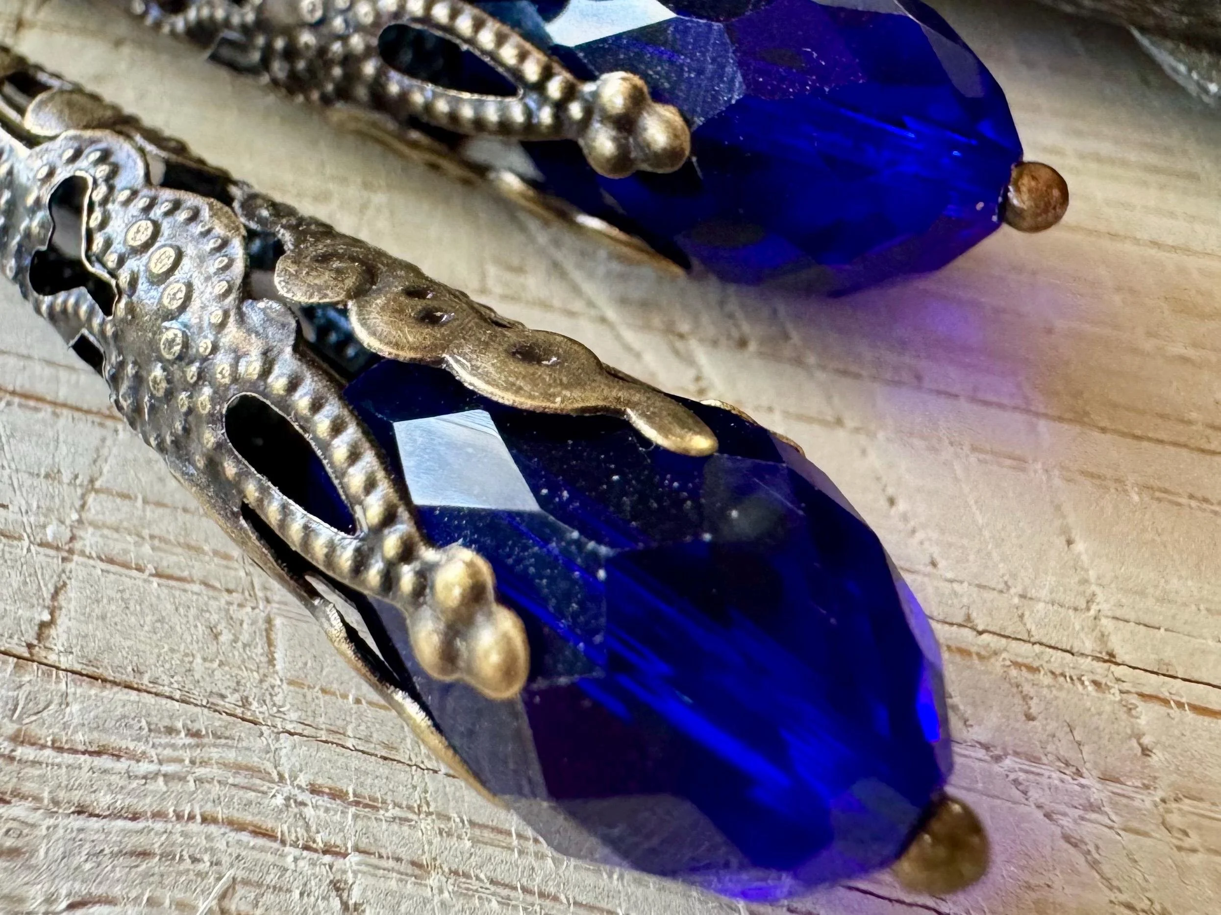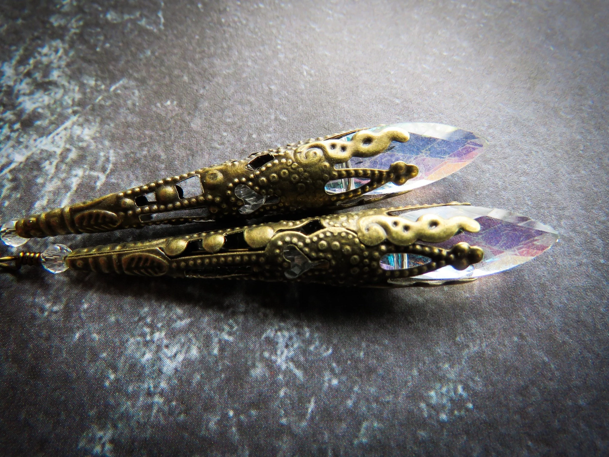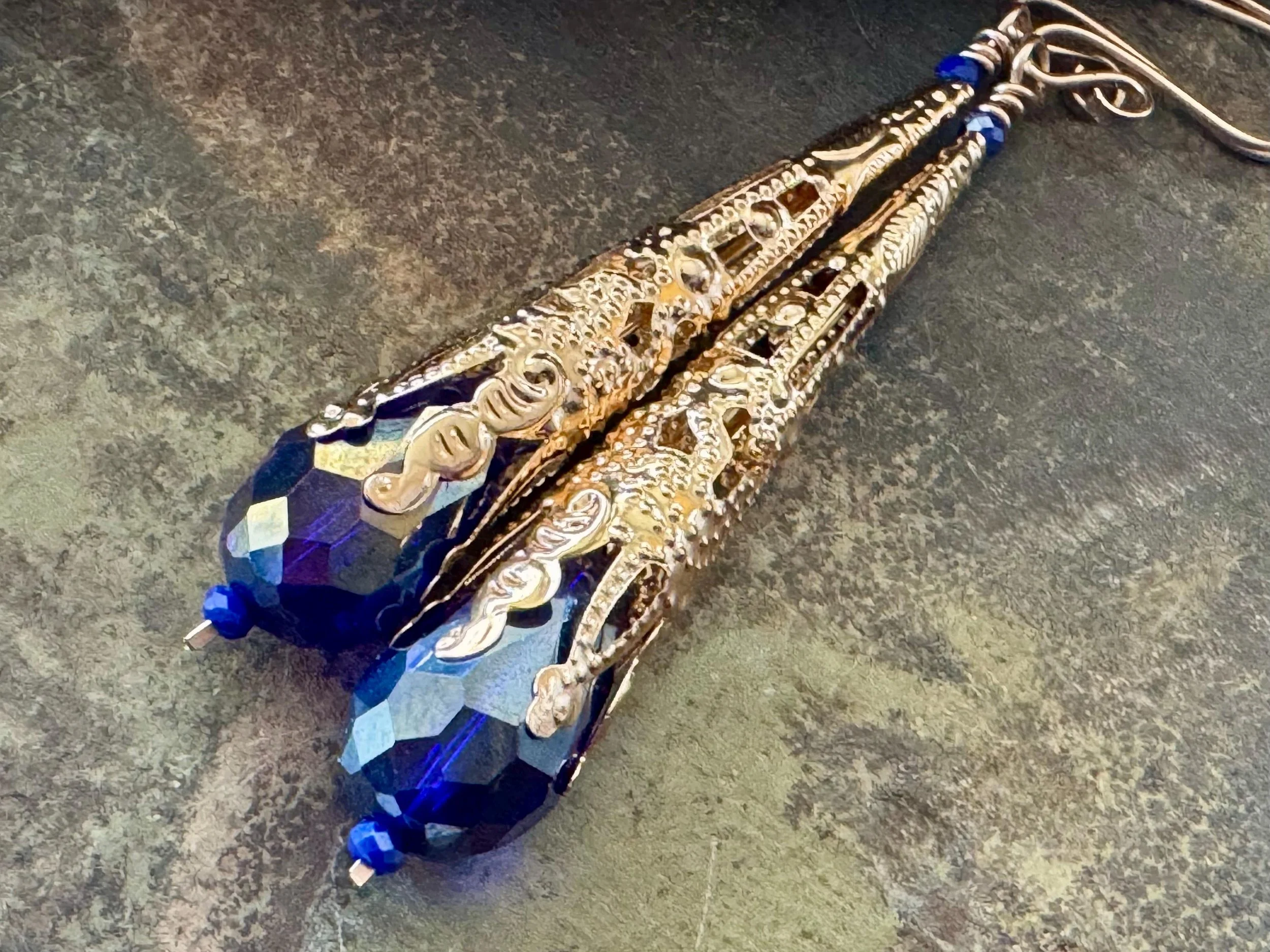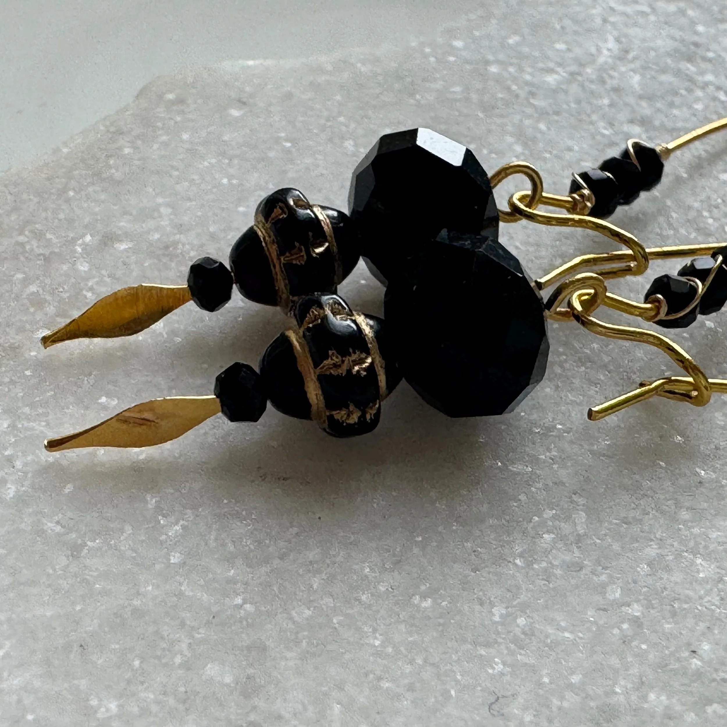 Elegant Amethyst Dangles: Handcrafted Bronze & Gold Statement Earrings