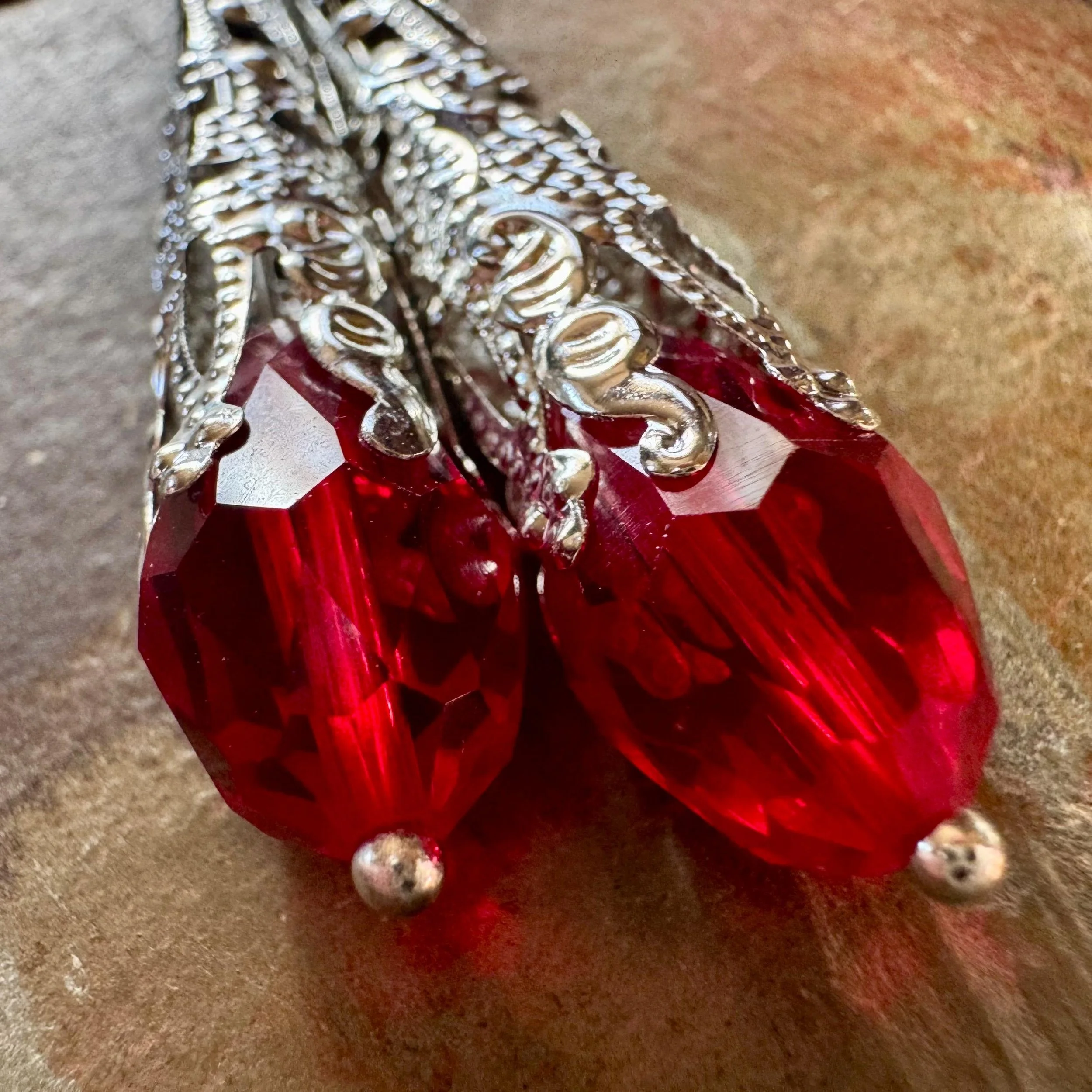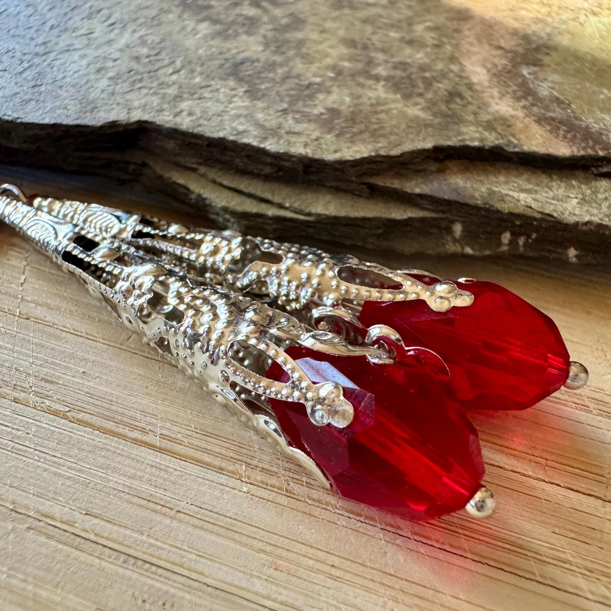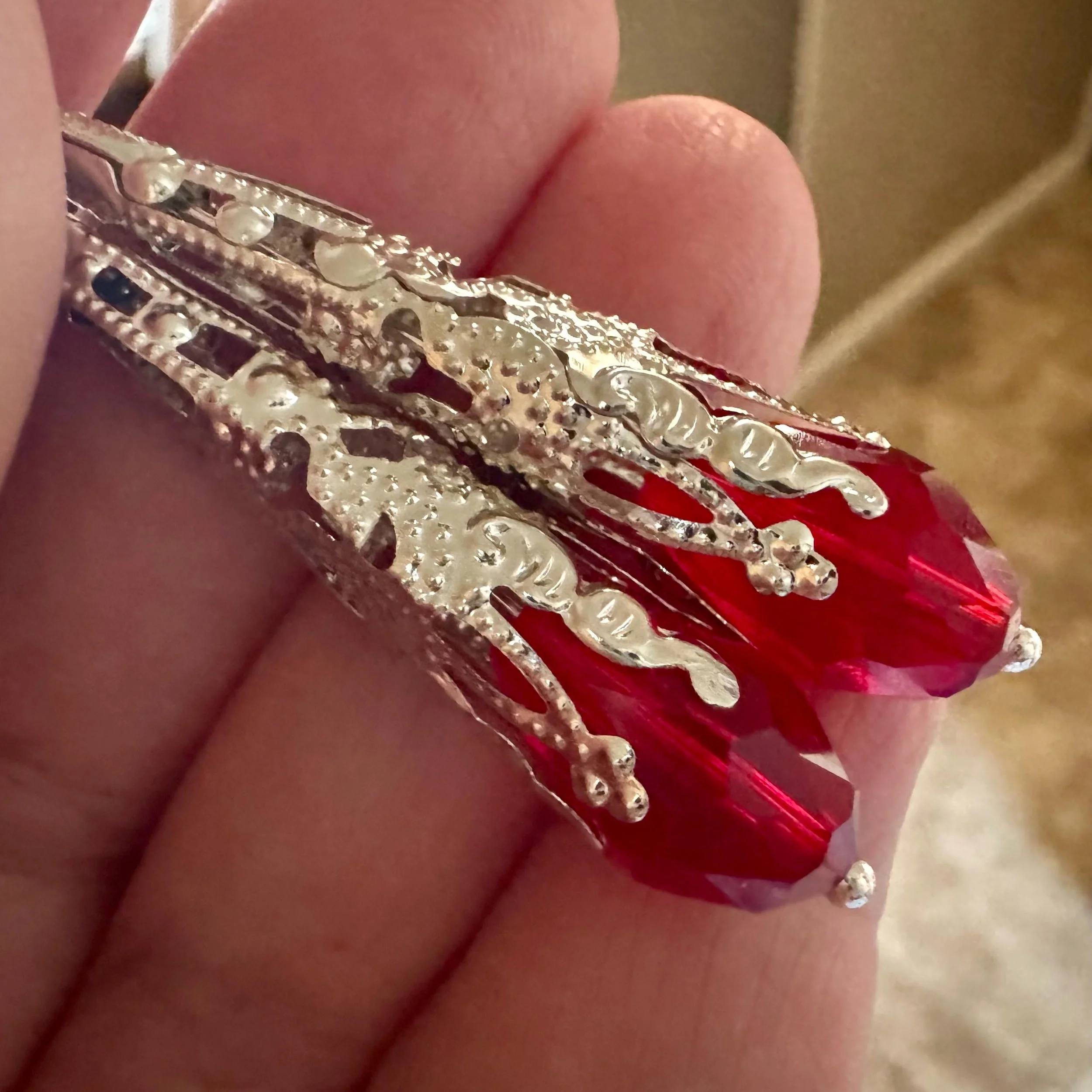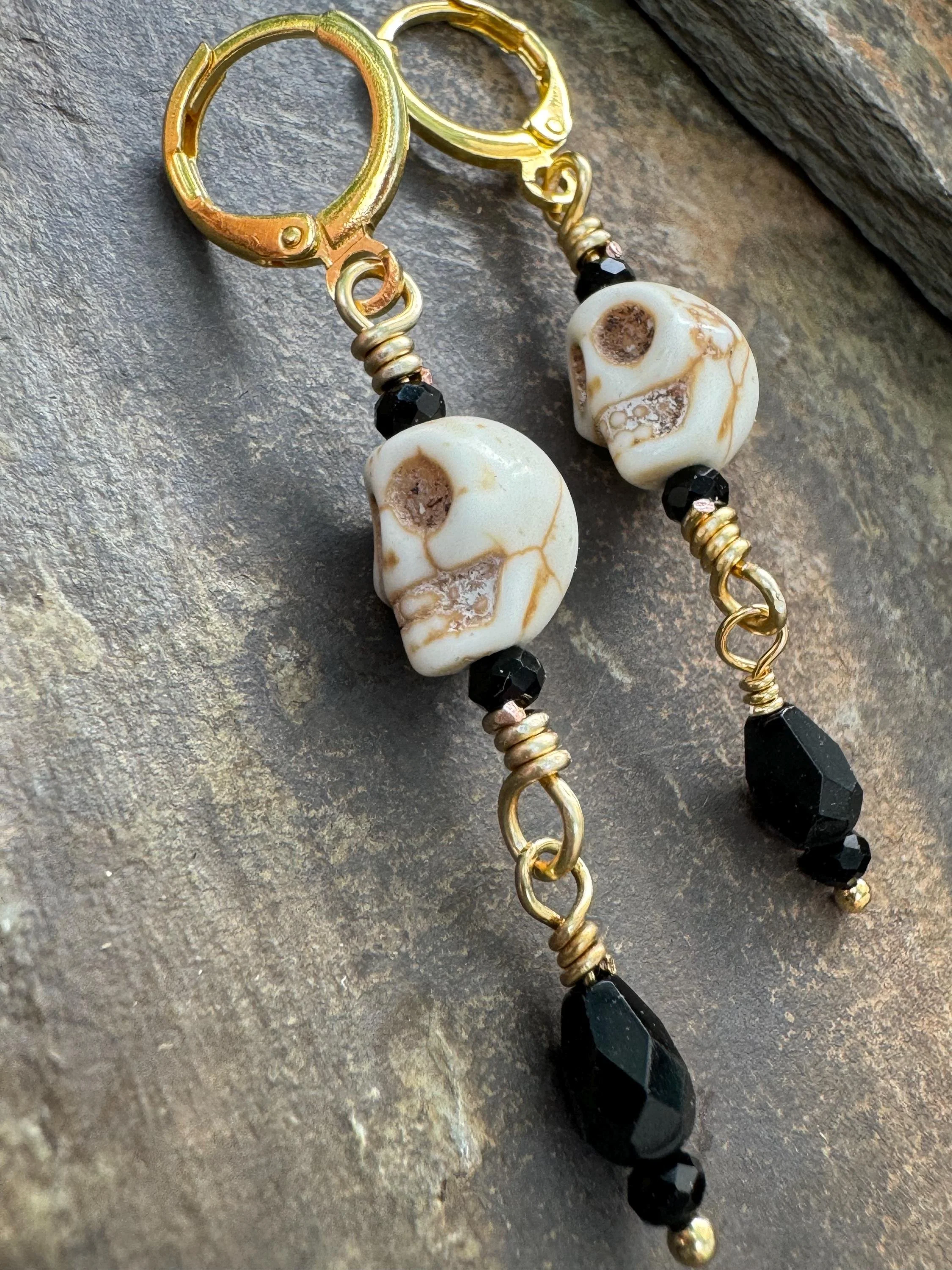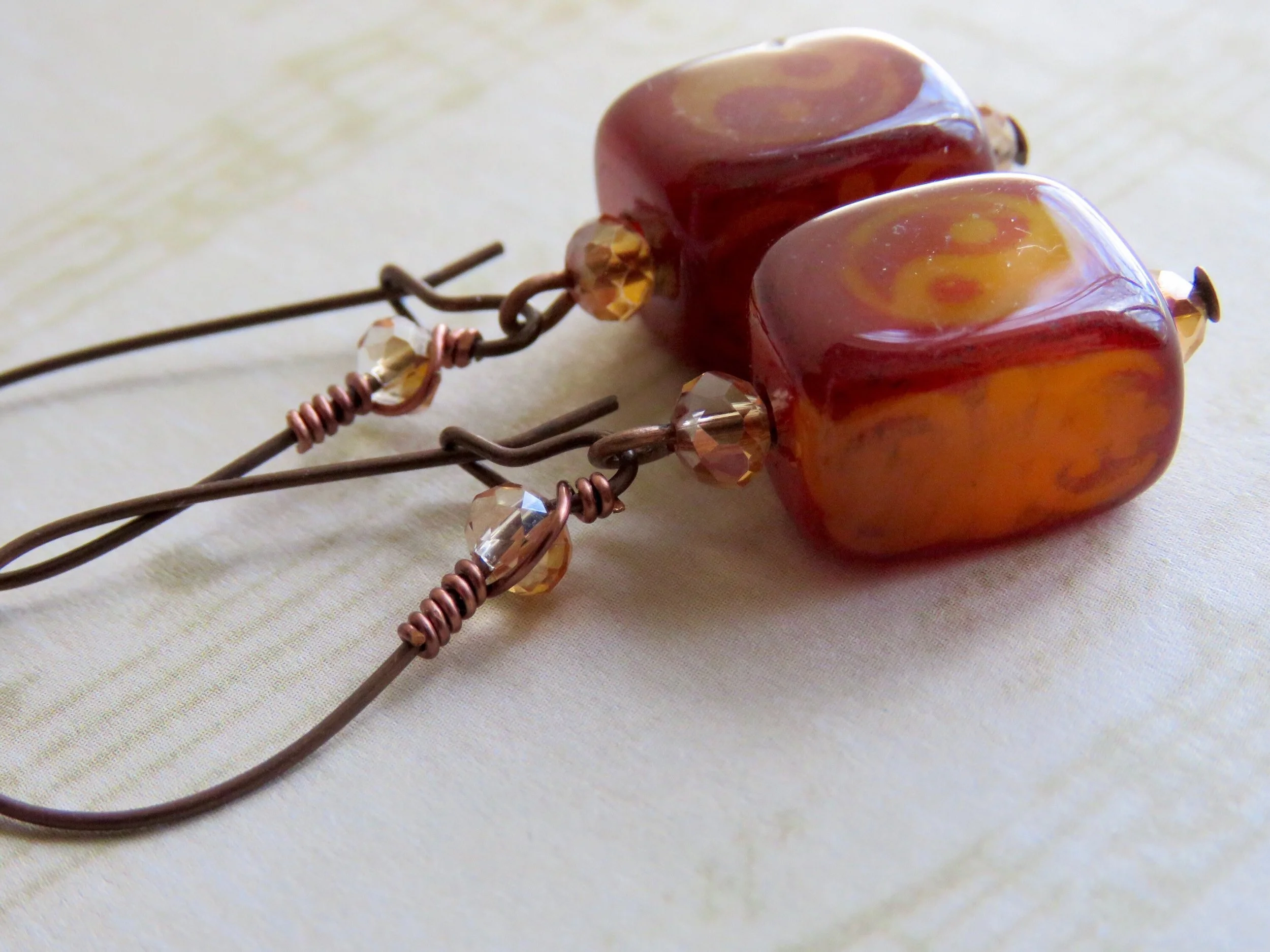 Elegant Amethyst Dangles: Handcrafted Bronze & Gold Statement Earrings