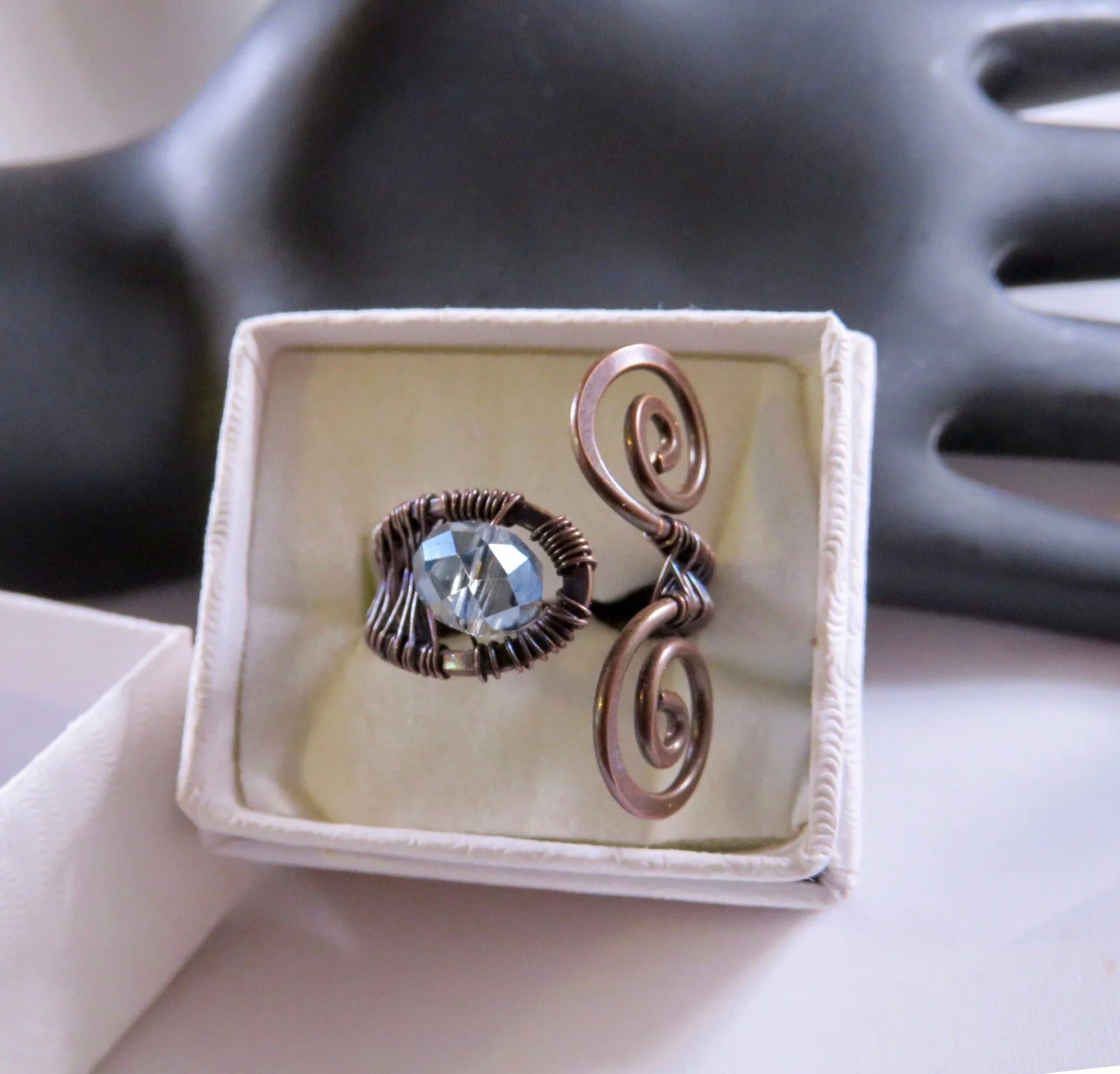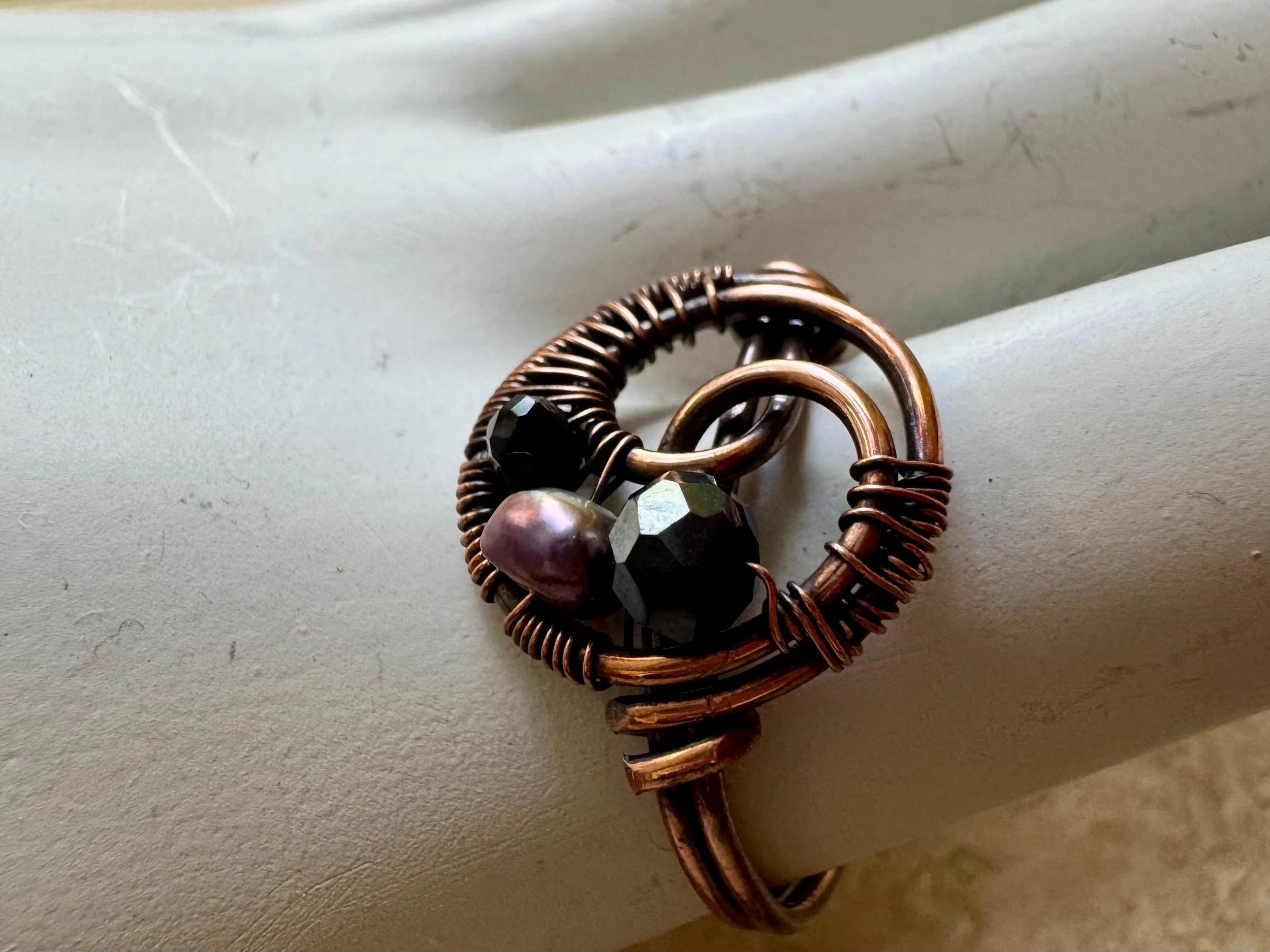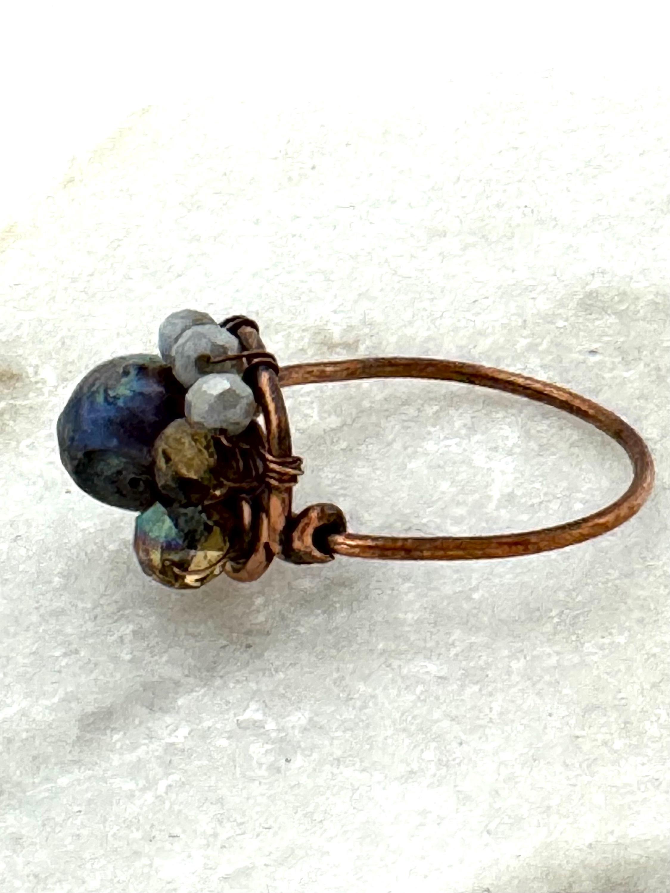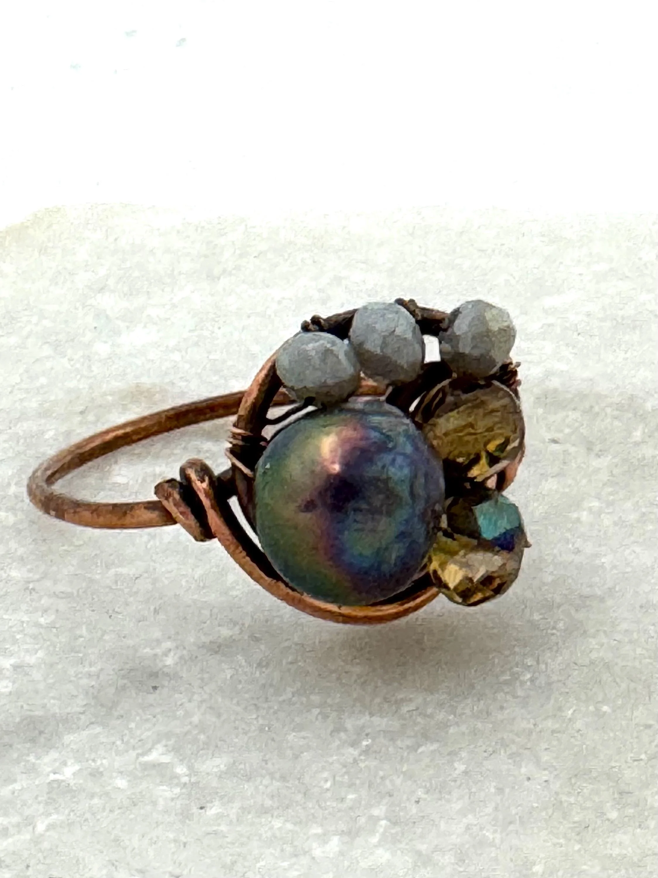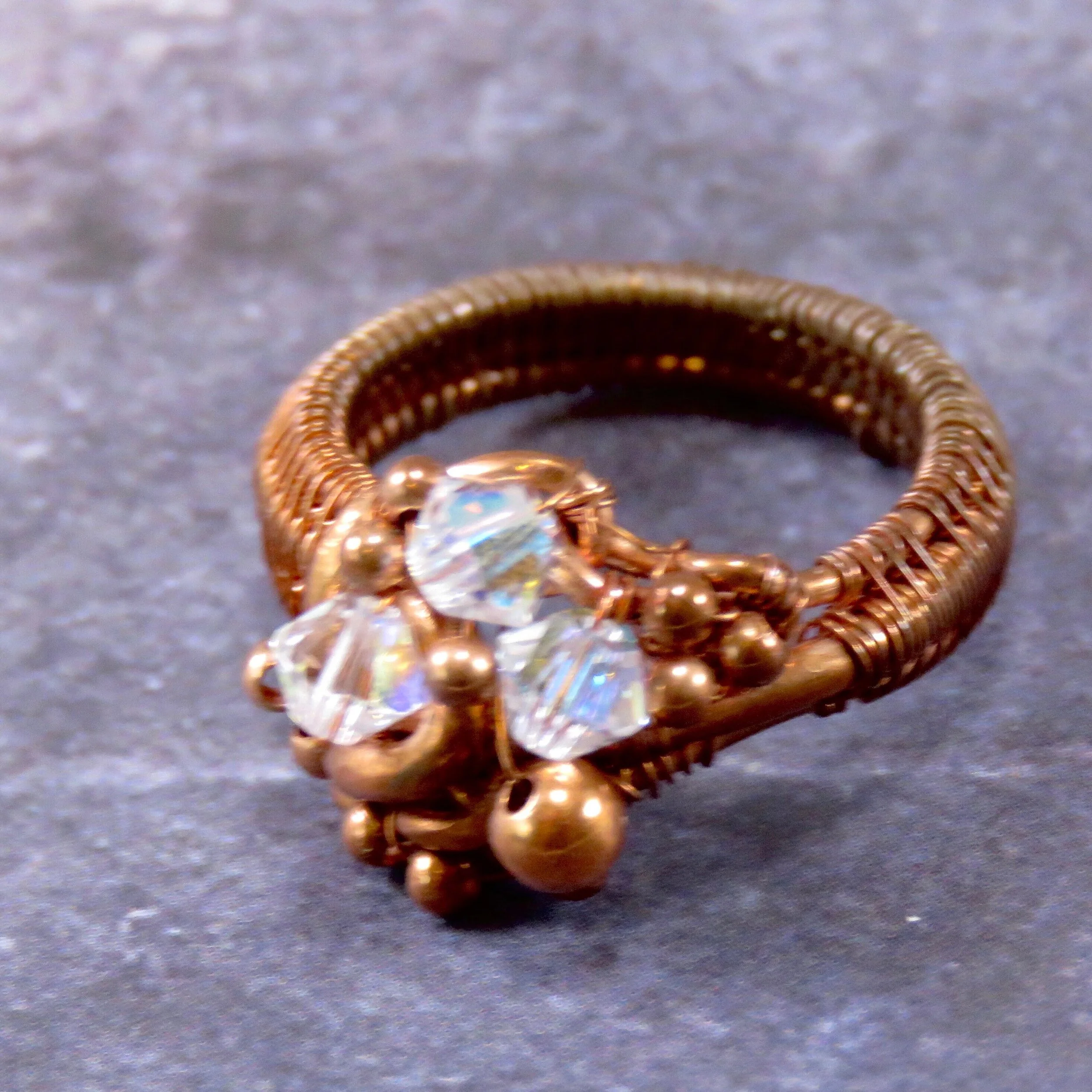 Wire Wrapped Copper Ring with Swarovski Crystals, Size 4.5