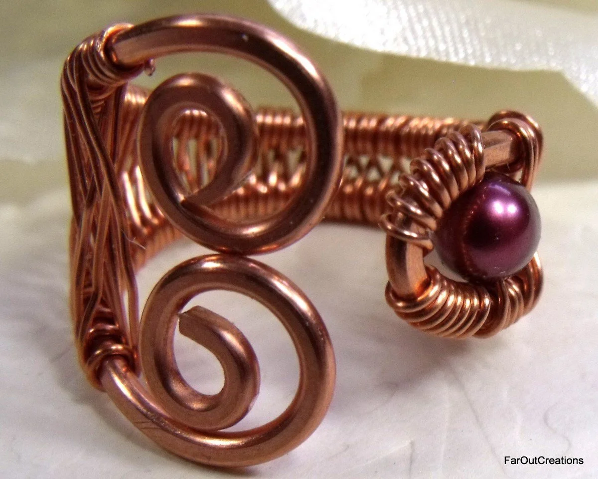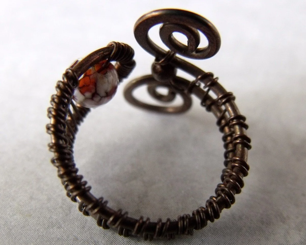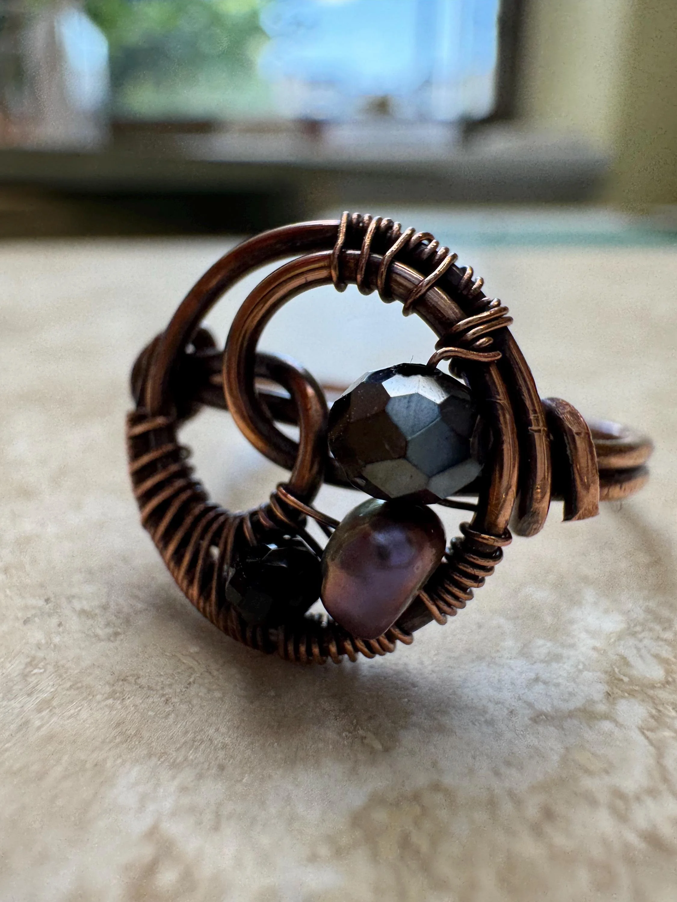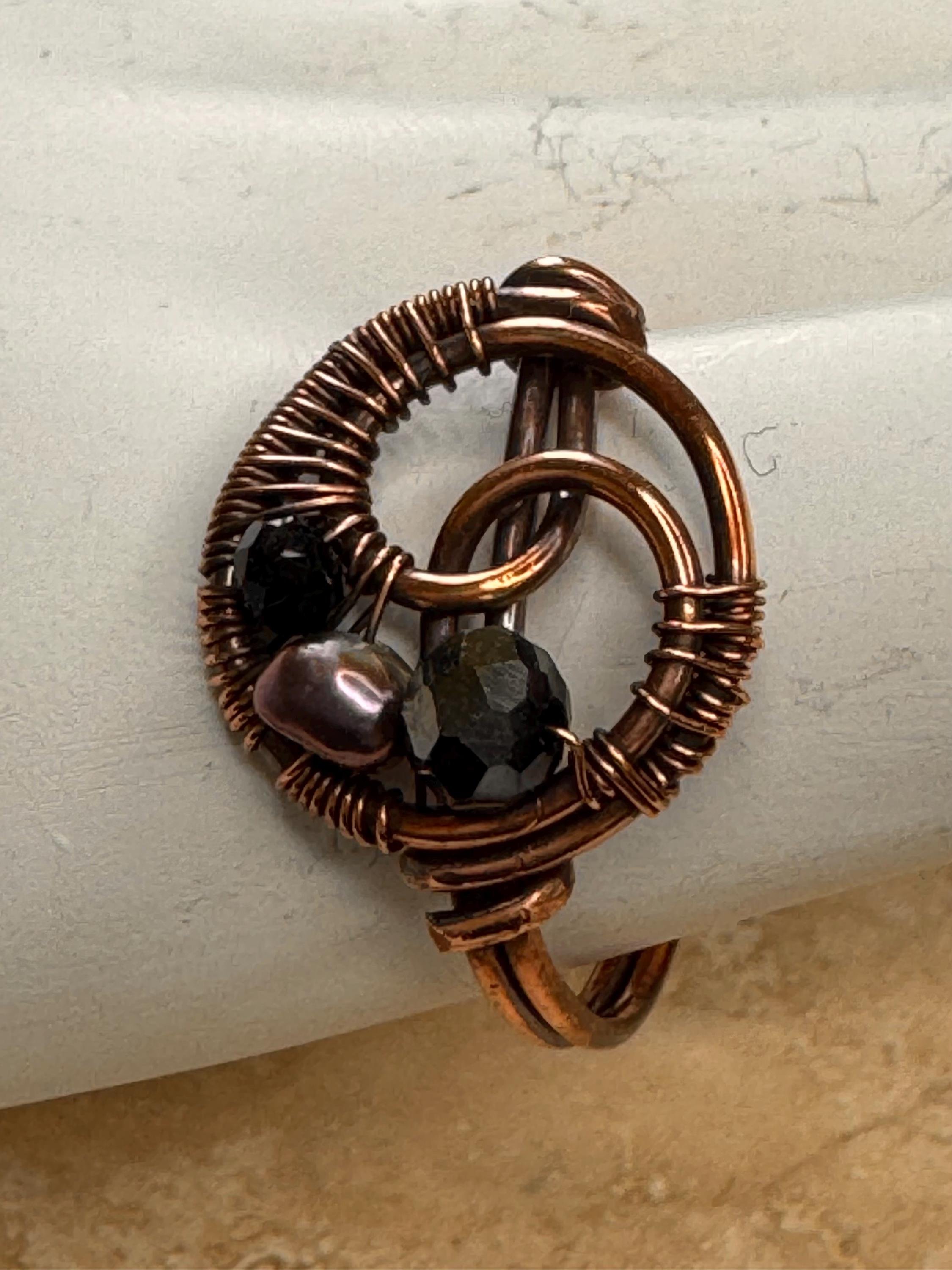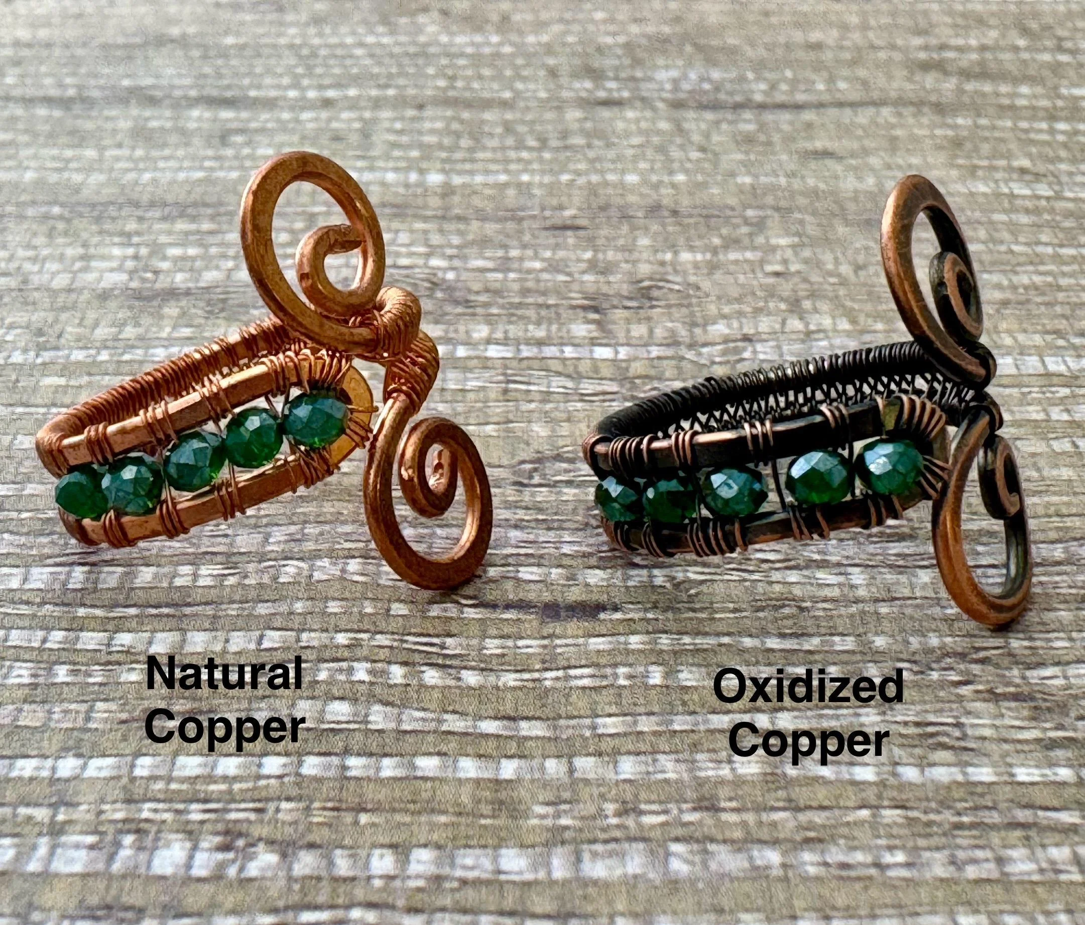 Wire Wrapped Copper Ring with Swarovski Crystals, Size 4.5