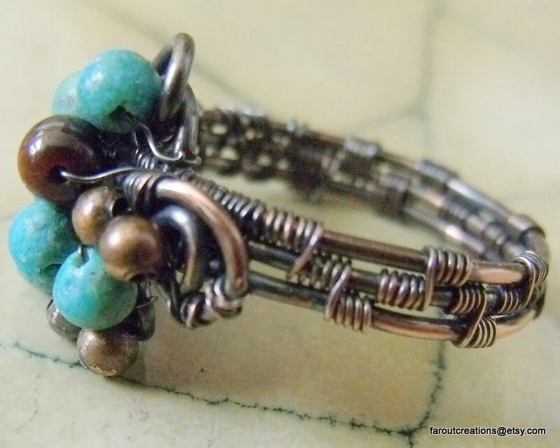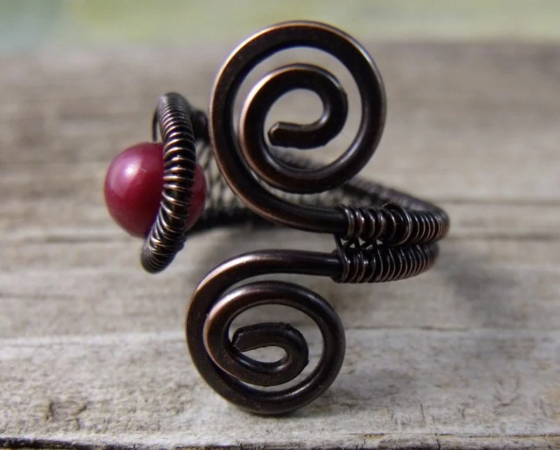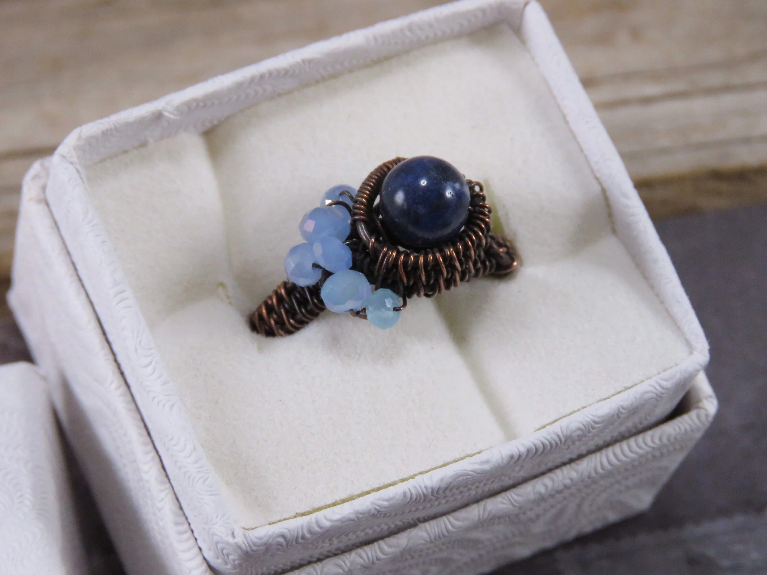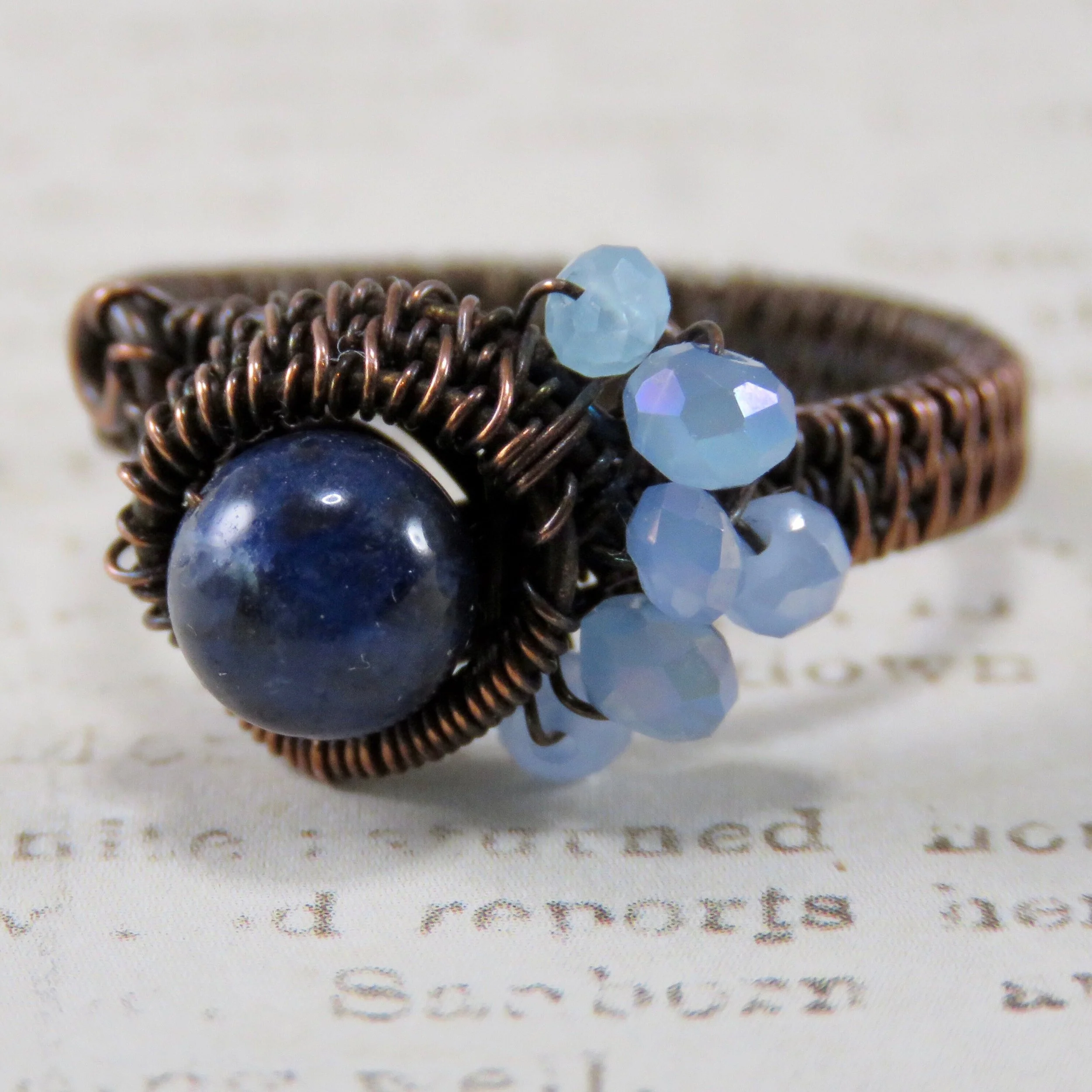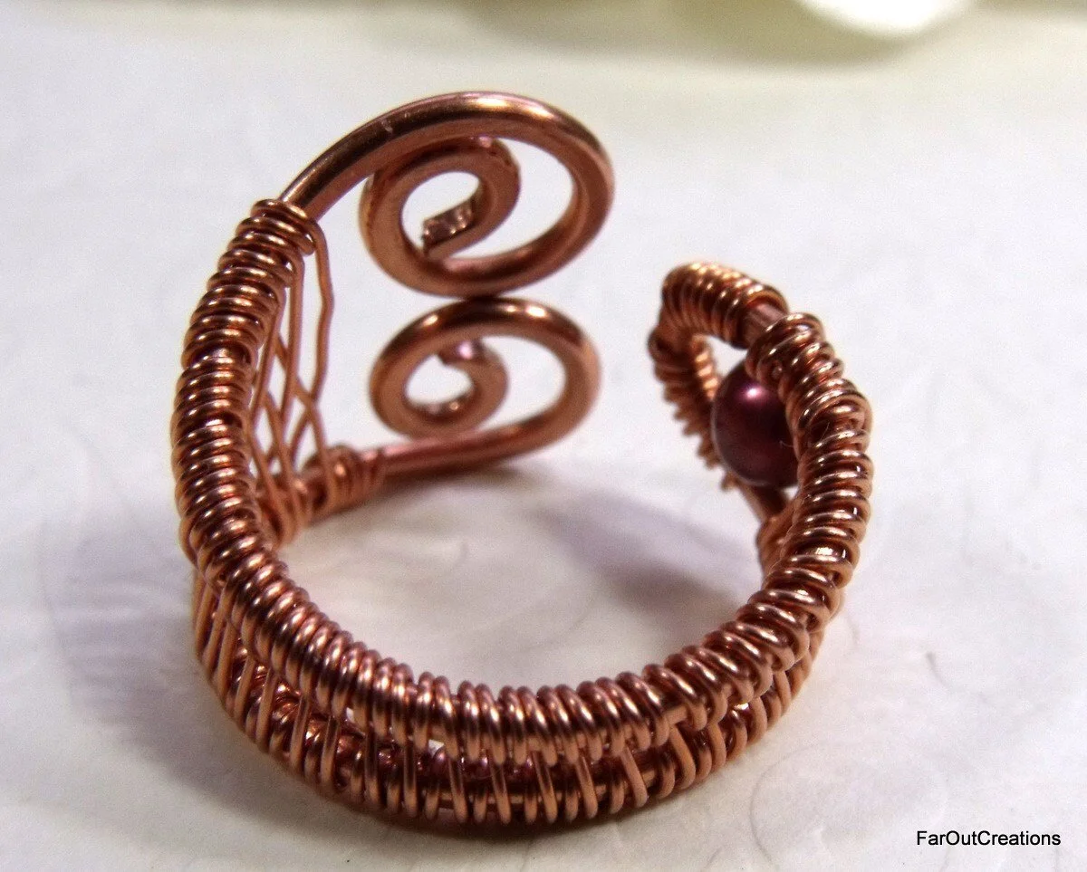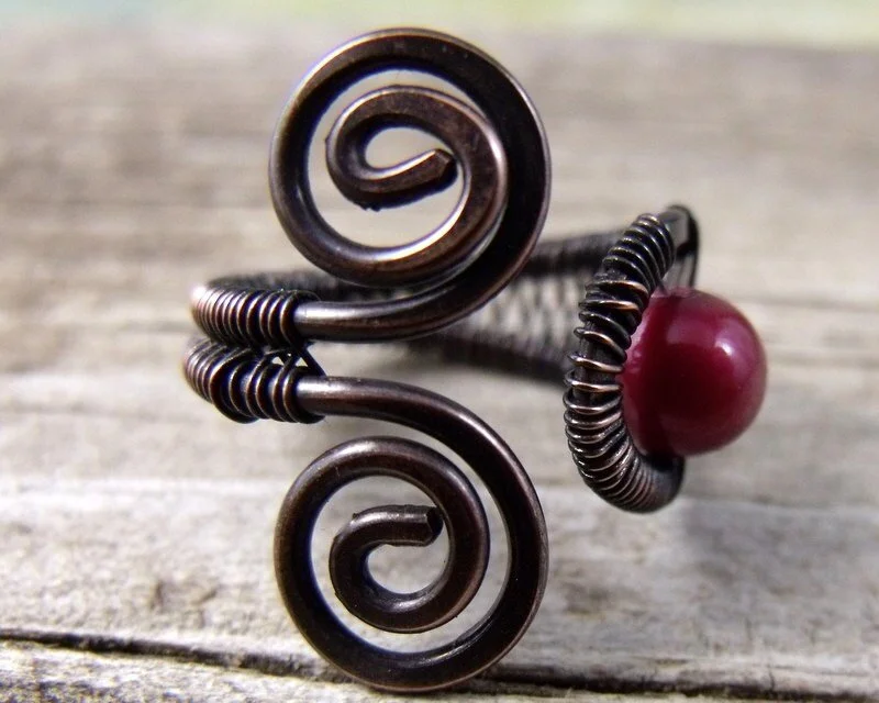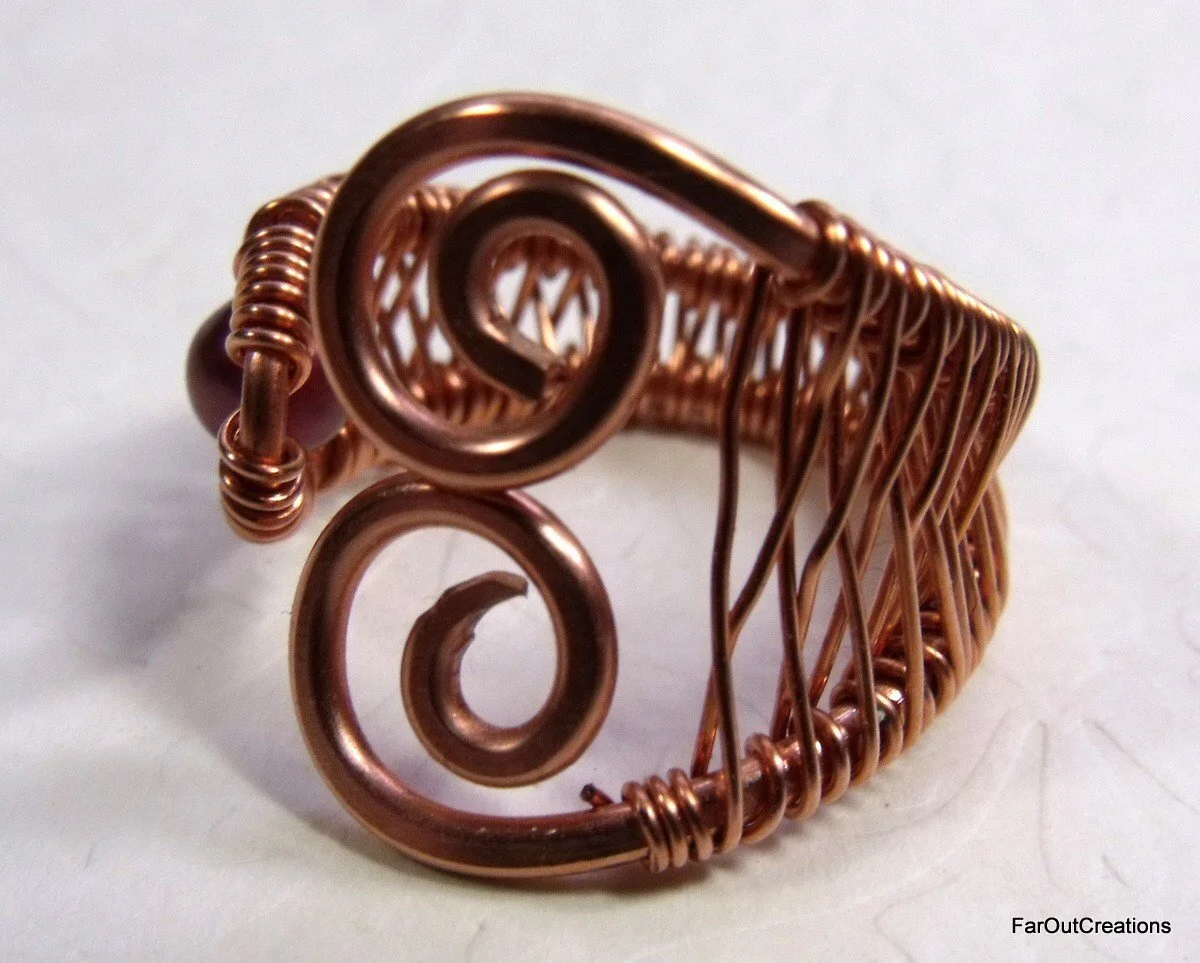 Wire Wrapped Copper Ring with Swarovski Crystals, Size 4.5