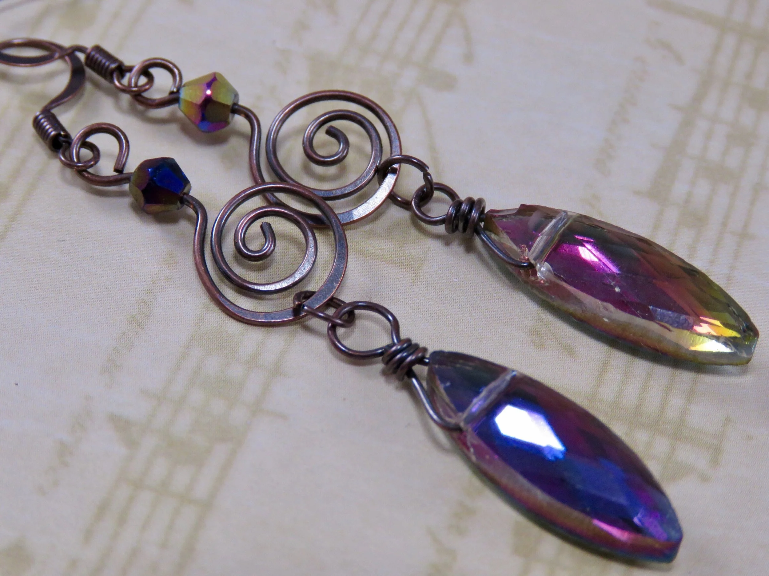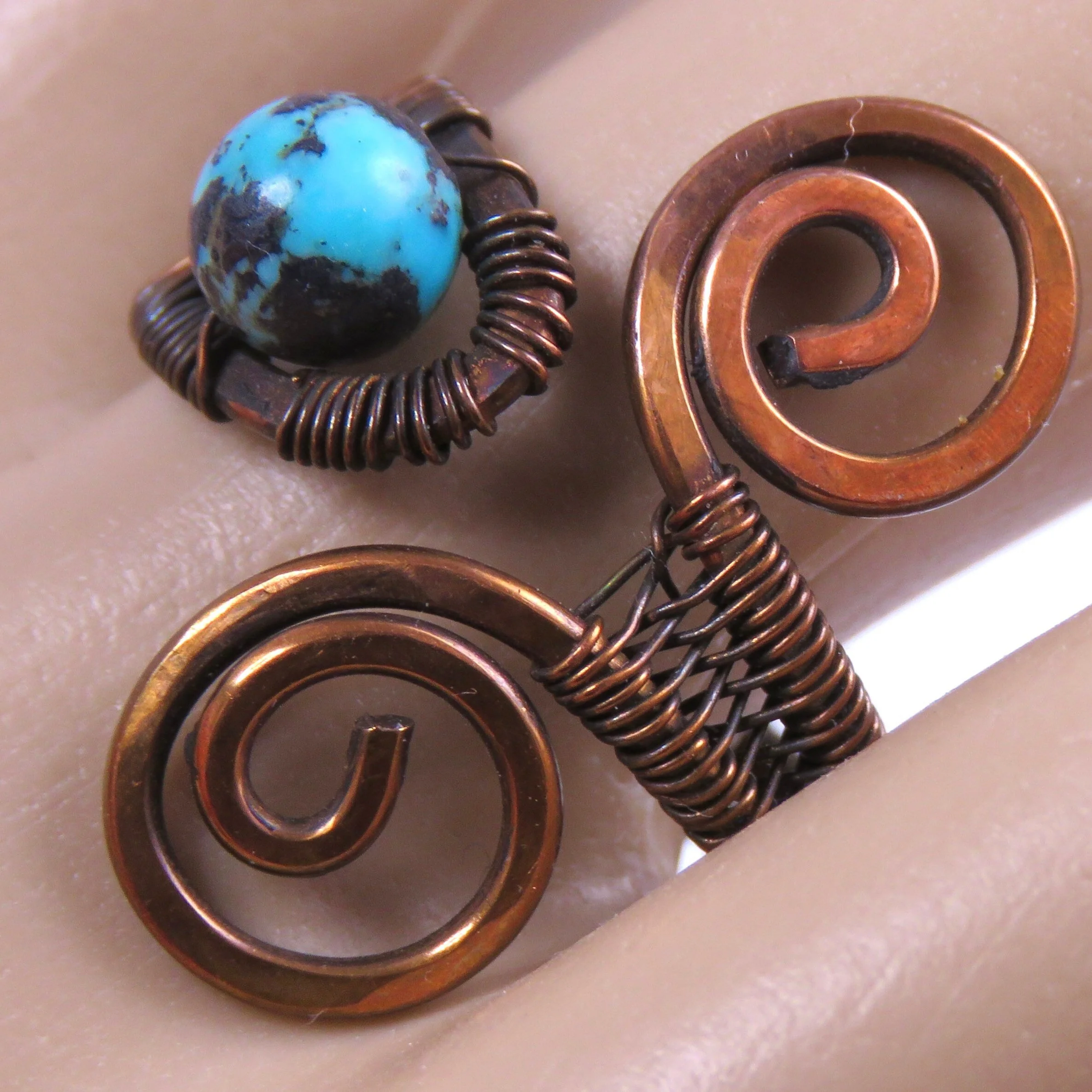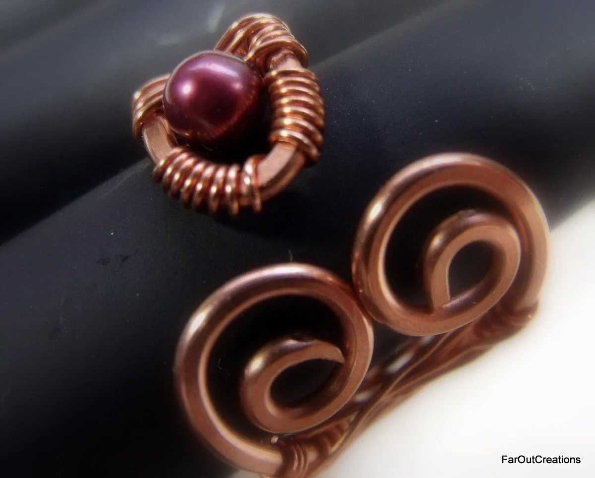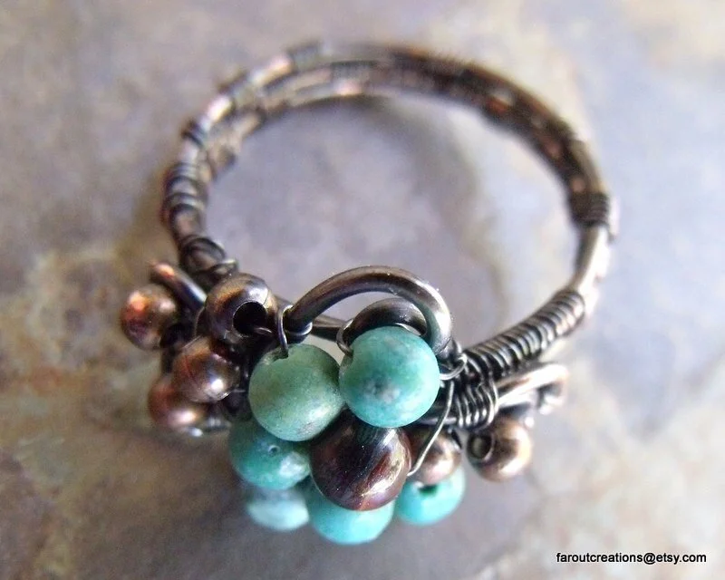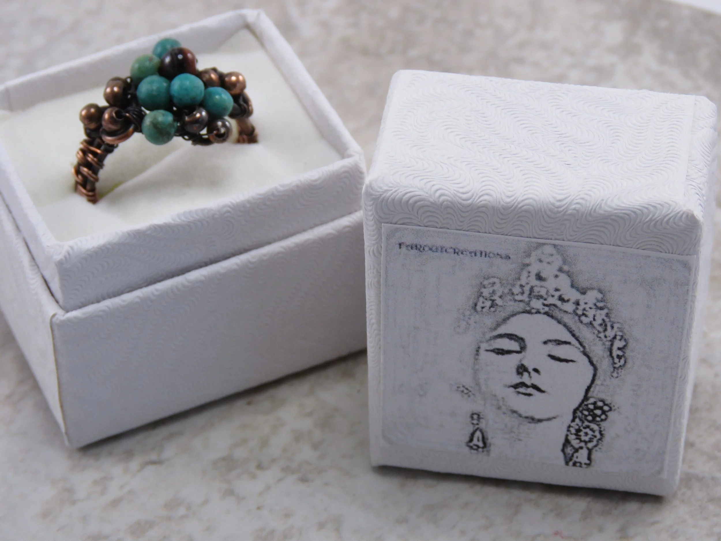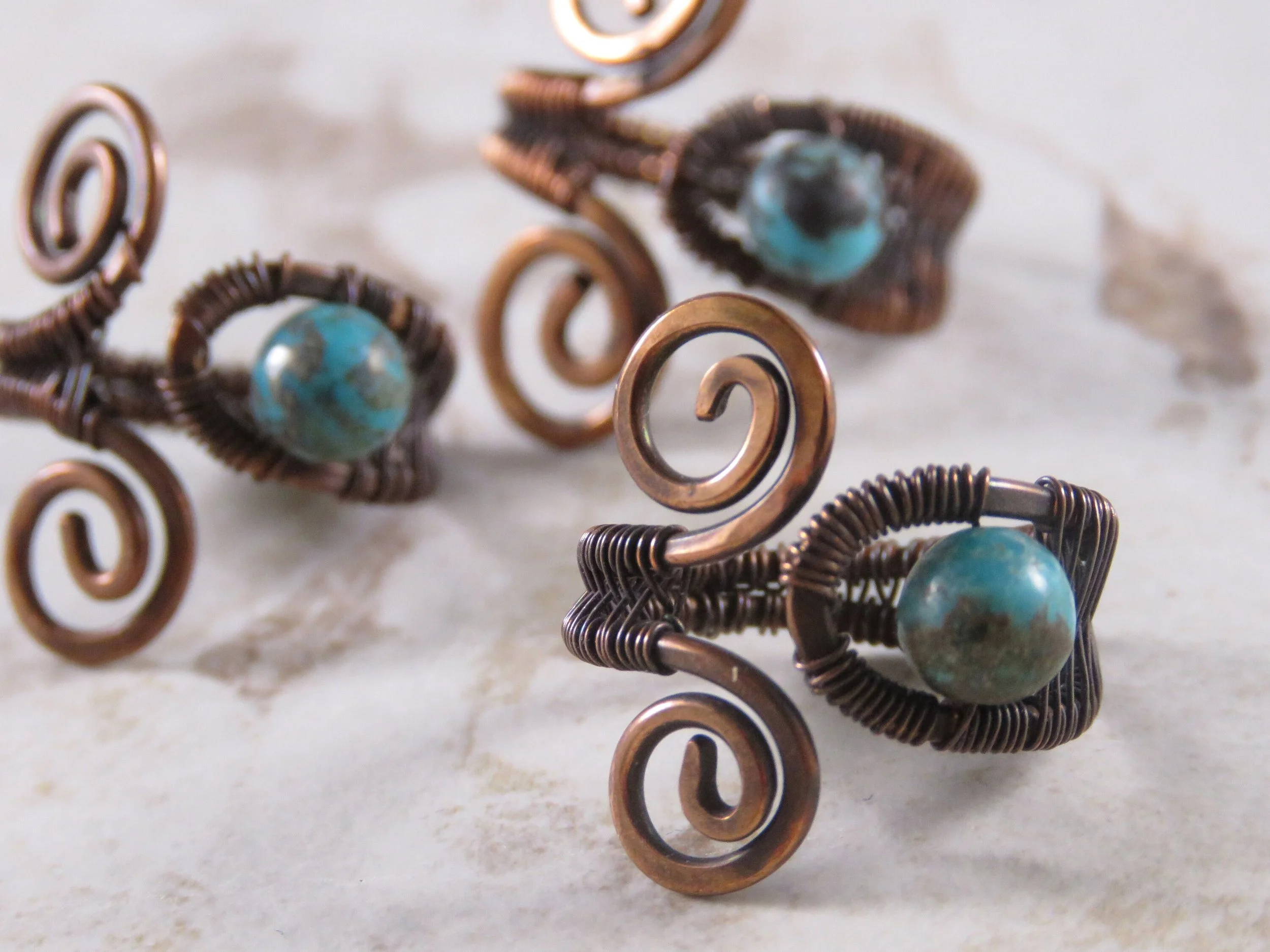 Wire Wrapped Copper Ring with Swarovski Crystals, Size 4.5