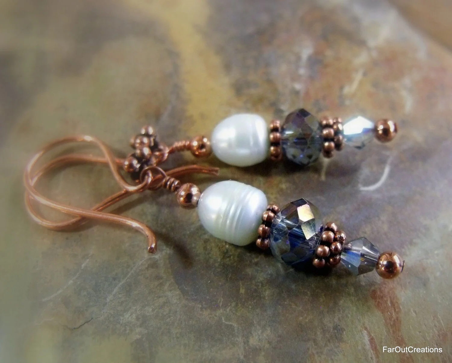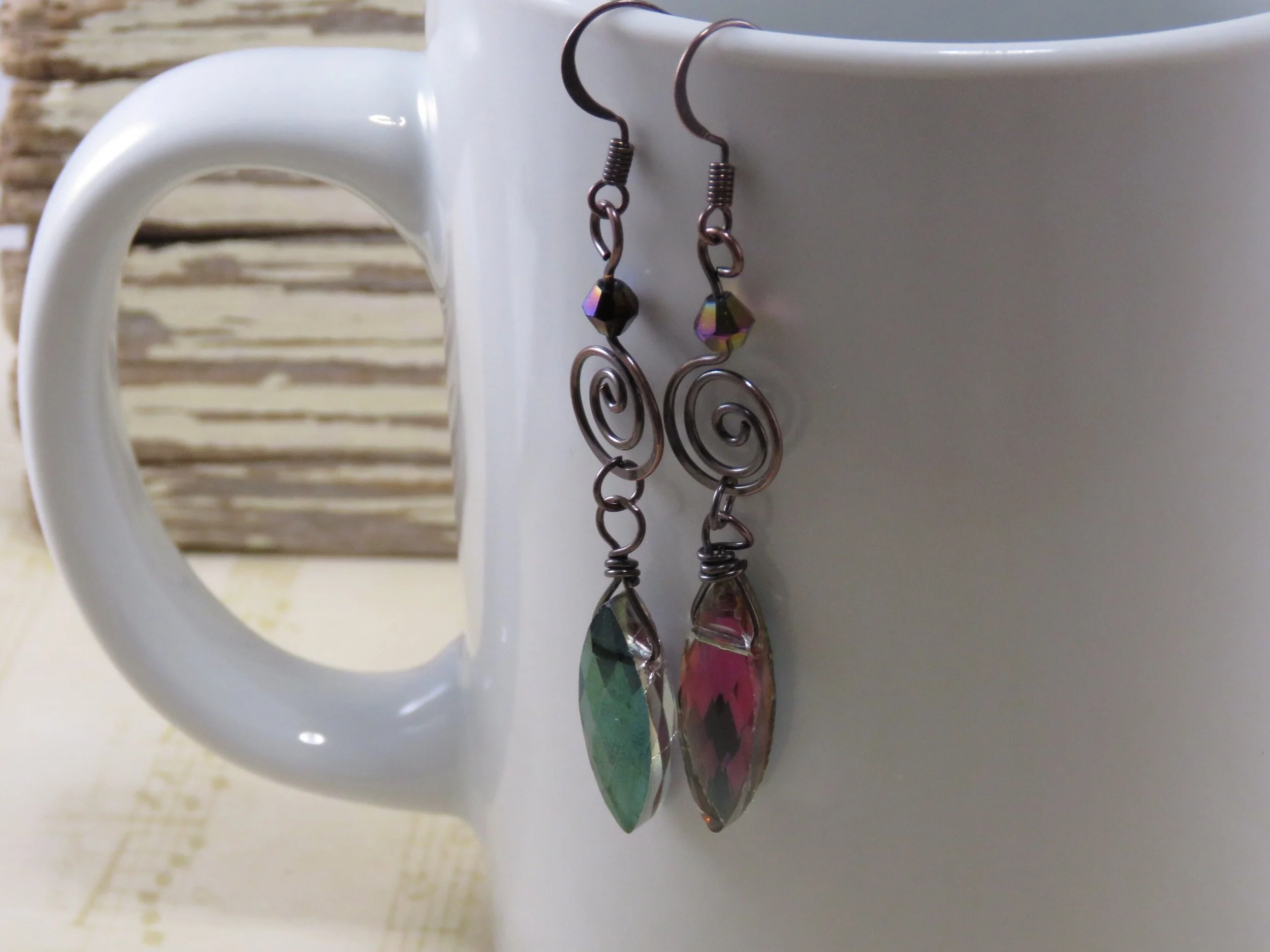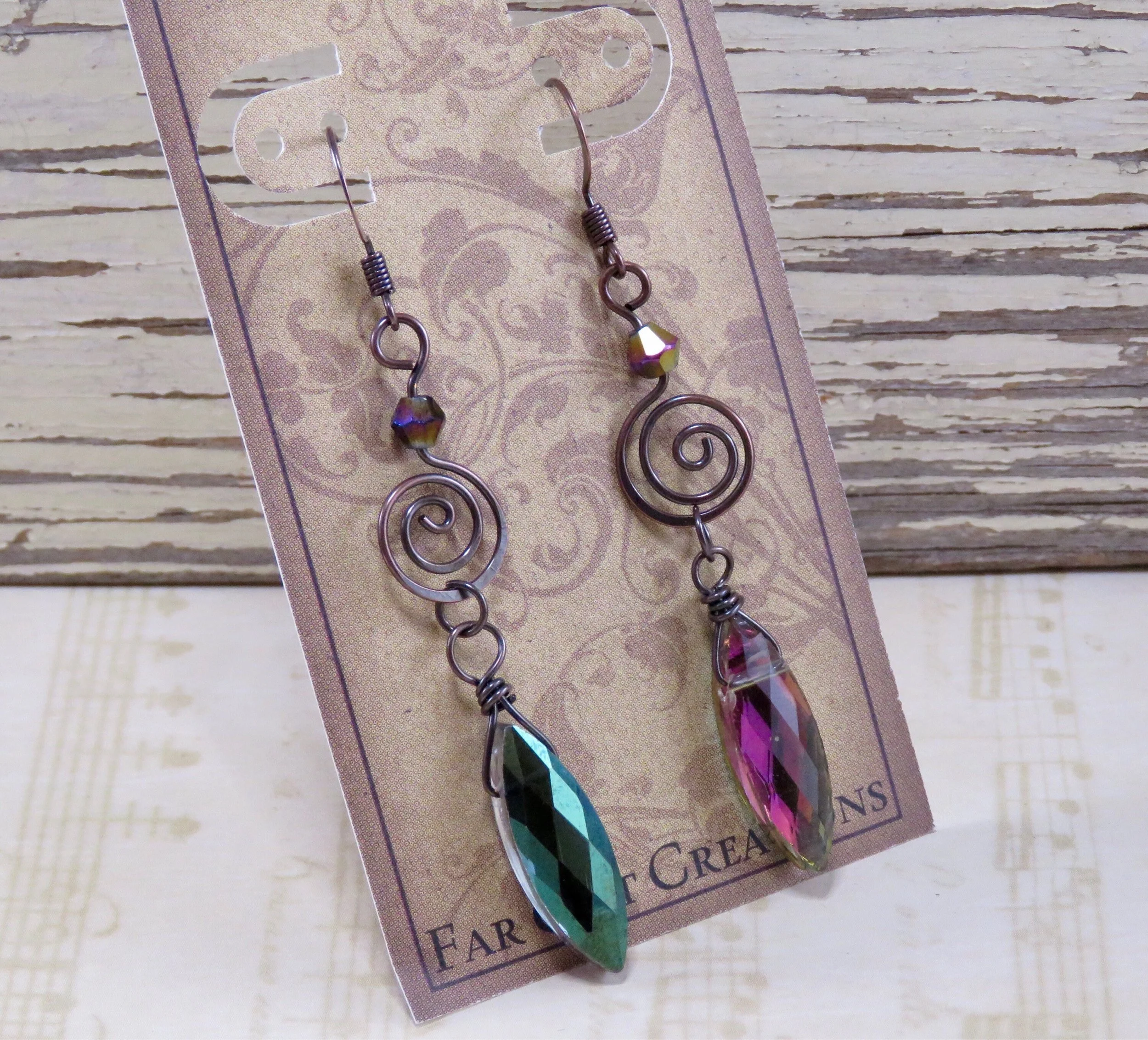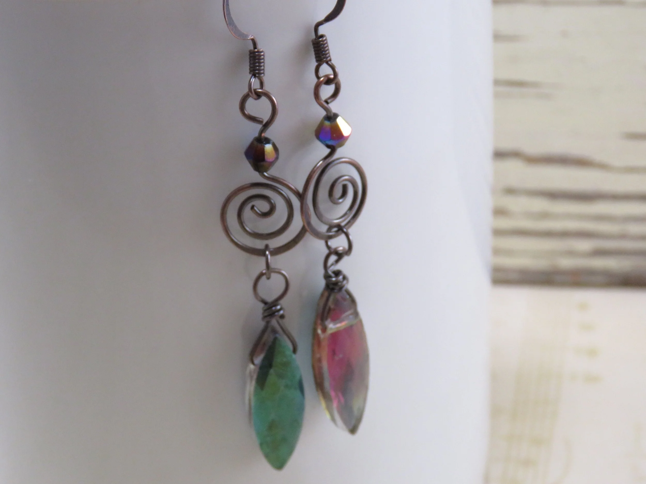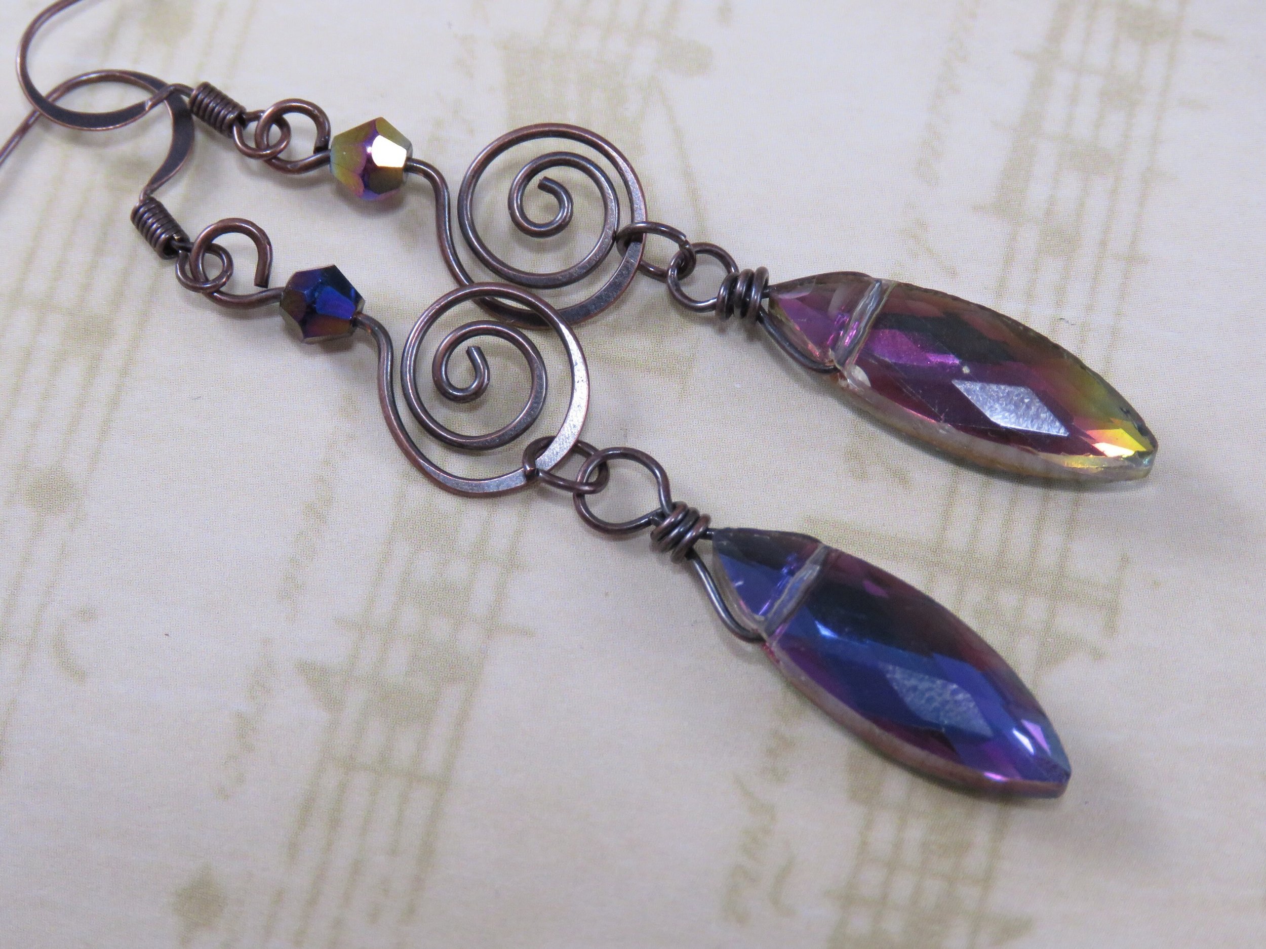 Wire Wrapped Copper Ring with Swarovski Crystals, Size 4.5